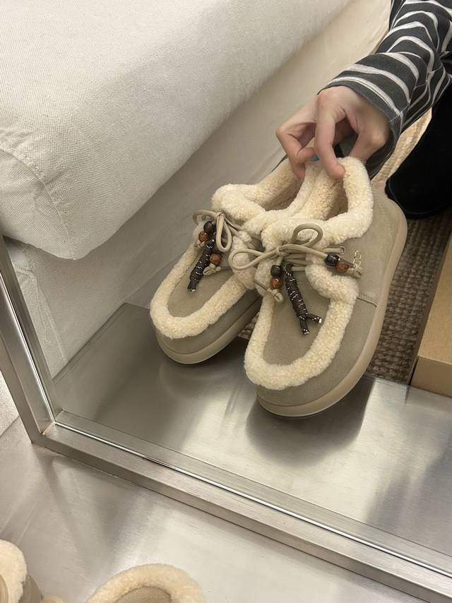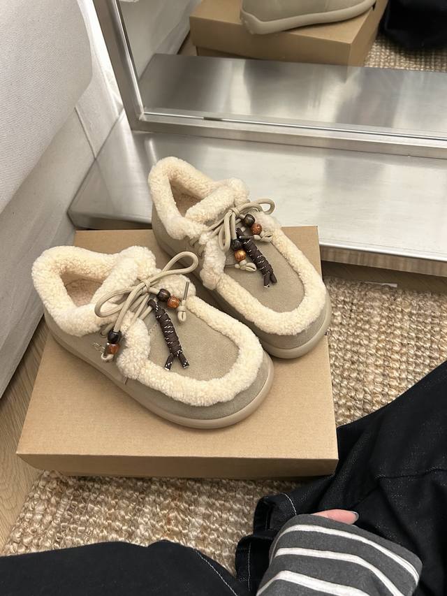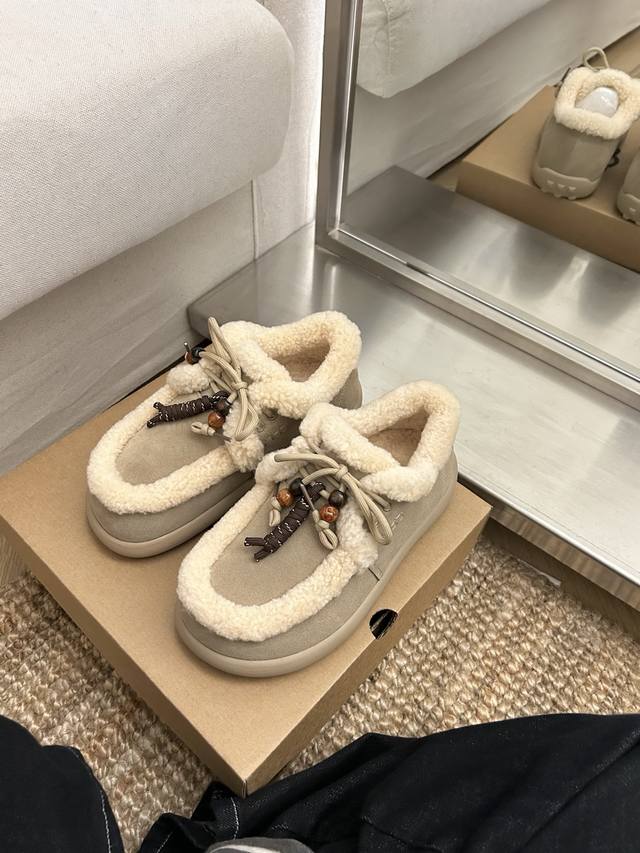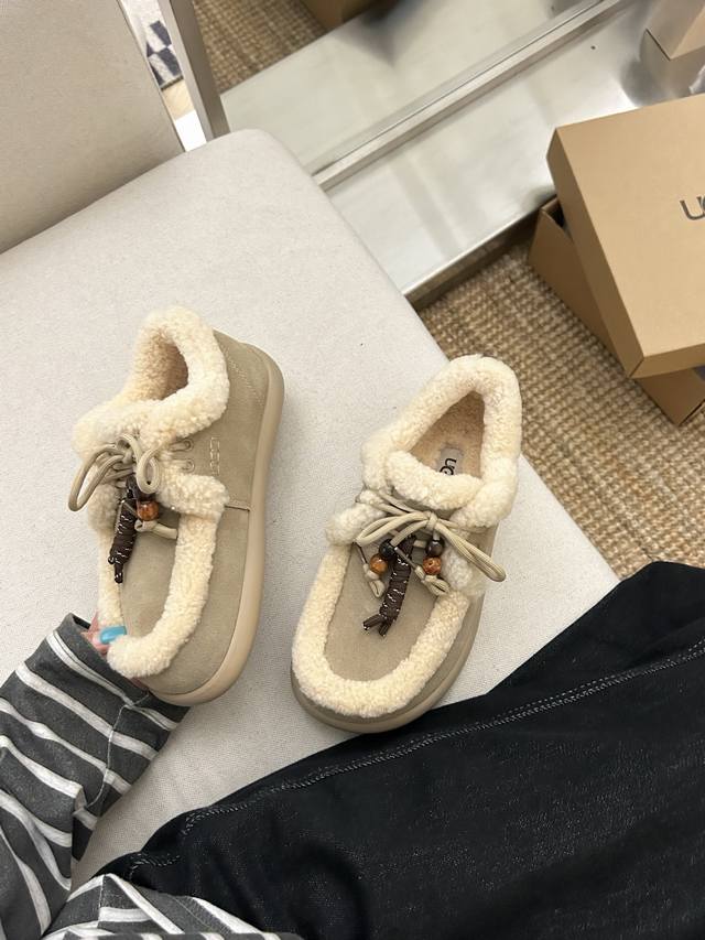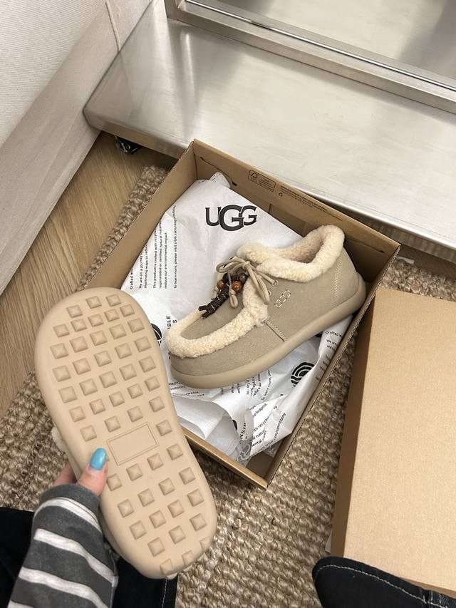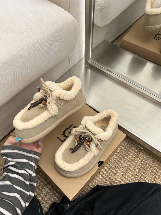 Ugg Chestnut Sauce Loafers, a must-have warm shoe for autumn and winter! The suede upper and Australian wool lining provide windproof warmth, keeping your feet cozy even in sub-zero temperatures. The lamb's wool trim at the ankle is soft and conforms to the skin for ultimate comfort. The slip-on design makes them easy to slip on and off