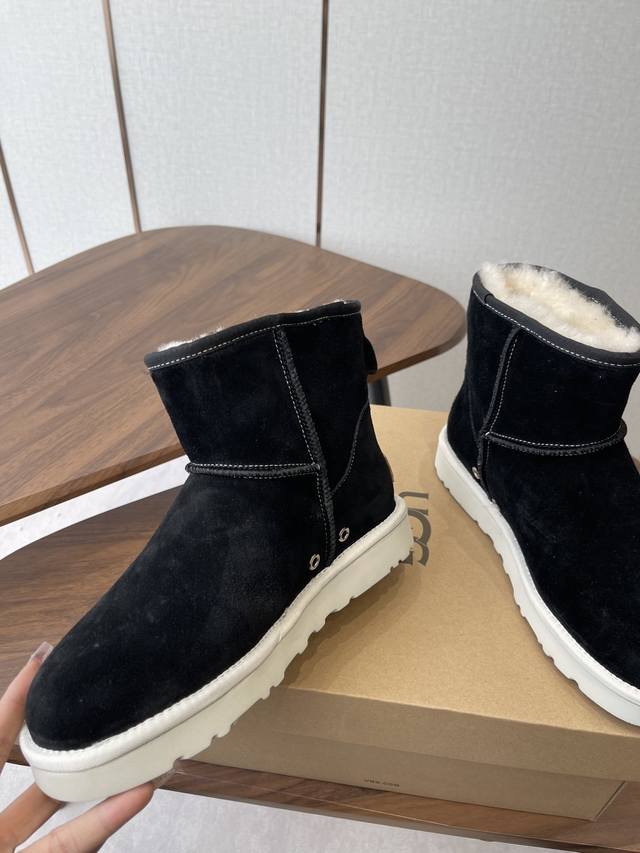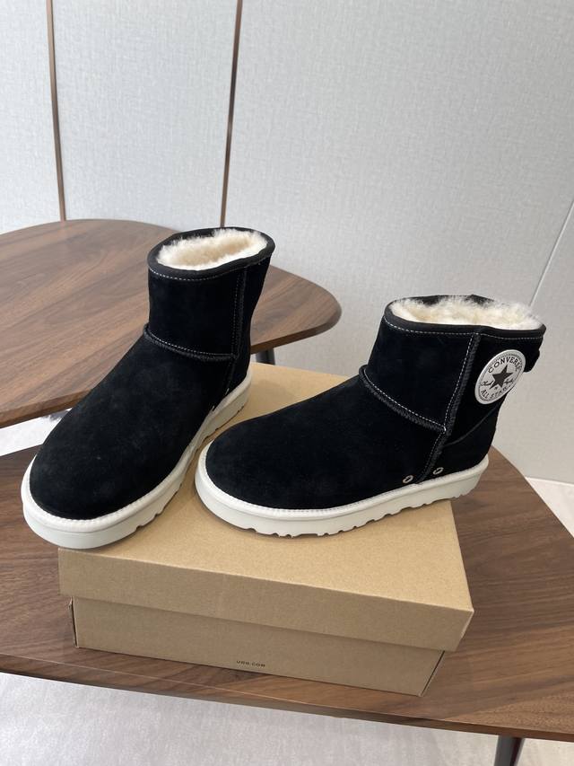 Ugg Collaboration with Converse 25Ss Autumn/Winter Warm Snow Boots DDD The upper is made of suede, and the lining is filled with wool, achieving a combination of warmth and texture. The mid-calf boot style with side buckle design not only enhances the fashion sense, but also allows for adjustment of the boot shaft shape according to the wearer's needs, such as folding it over to change the style. The platform design also provides a height increase, suitable for winter cold-weather scenarios, and can be matched with various styles such as casual and streetwear. DDD Ugg is famous for its sheepskin snow boots. This buckle style is an extension of the brand's classic product line. It retains the core genes of "warmth and comfort" while enhancing its fashion attributes with details such as metal buckles. It is often the choice of celebrities and trendsetters in autumn and winter. DDD Upper: Cowhide Suede Lining: New Zealand Imported Wool Outsole: Rubber Combination Outsole DDD Size: 35-40 Size 40 is made to order and cannot be returned or exchanged DDD