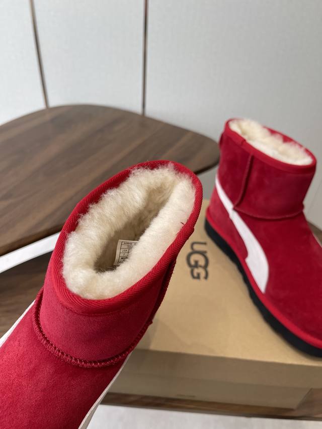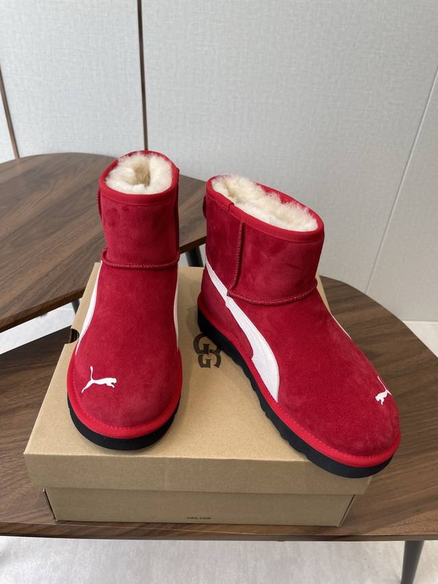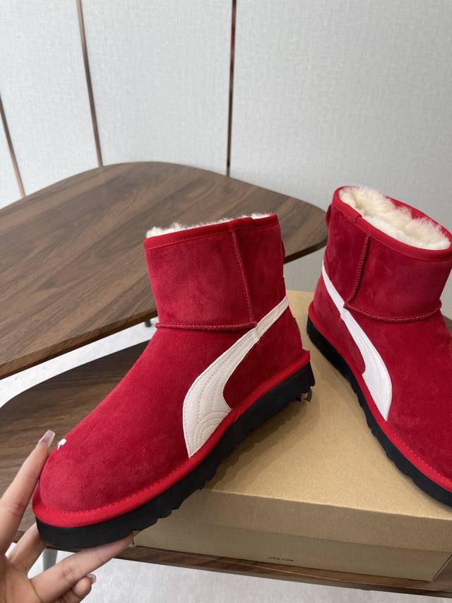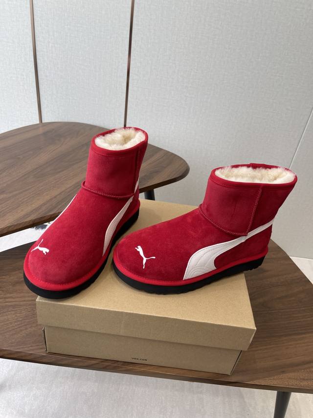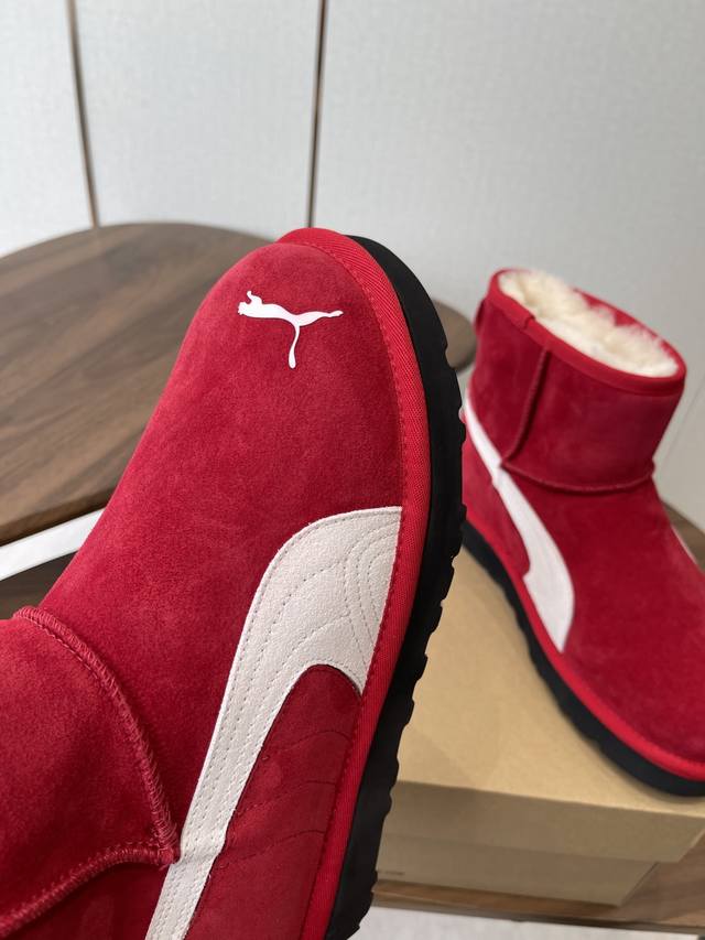Ugg Collaboration with Puma 25Ss Autumn/Winter Warm Snow Boots DDD The upper is made of suede, and the lining is filled with wool, achieving a combination of warmth and texture. The mid-calf boot style with side buckle design not only enhances the style but also allows for adjustment of the boot shaft shape according to the wearer's needs, such as folding it over to change the style. The platform sole design also provides a height increase, suitable for winter cold-weather scenarios, and can be adapted to various styles such as casual and streetwear. DDD Ugg is famous for its sheepskin snow boots. This buckle style is an extension of the brand's classic product line, retaining the core genes of "warmth and comfort" while enhancing its fashion attributes with details such as metal buckles. It is often the choice of celebrities and trendsetters in autumn and winter. DDD Upper: Cowhide Suede Lining: New Zealand Imported Wool Outsole: Rubber Combination Outsole DDD Size: 35-40 Size 40 is made to order and cannot be returned or exchanged DDD