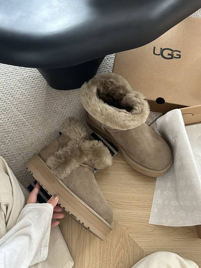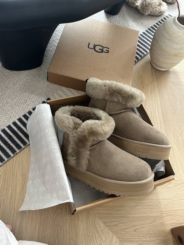 Ugg. Cute thick-soled alpaca fur-trimmed snow boots, the same style as the brick cabinet. 1:1 custom mold, sheepskin lining.