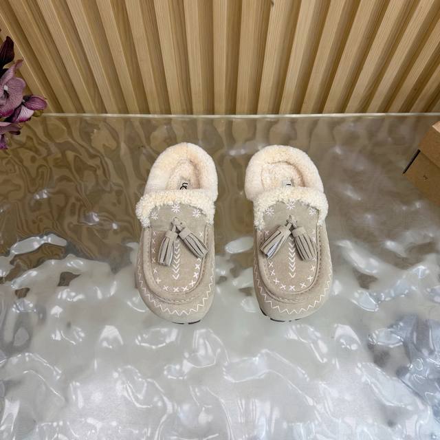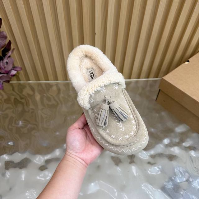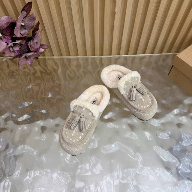 Ugg Ethnic Bohemian Style Tassel Autumn/Winter New Women's Casual Classic Furry Slippers DDD Ugg's new autumn/winter "cloud-like" furry slippers are perfect for all kinds of relaxed outfits~ The sheepskin and fur trim wraps your feet in a warm and gentle embrace , while the thick sole adds a light and airy feel. Whether you're going downstairs to pick up a package or pairing them with a sweater dress, you can instantly achieve a "lying down and looking stylish" look~ Half of the fashion world is wearing them, effortlessly exuding a "no-nonsense high-end" feel~ The sheepskin and fur trim is incredibly soft and fluffy, like having a little lamb tucked into your feet DDD Upper: Suede with a retro texture, exuding a casual vibe DDD Lining: Soft and warm sheepskin and fur trim, comfortable even barefoot Outsole: Eva thick sole with lightweight rebound, walking feels like walking on cotton candy DDD Size: #35 ~ 39 40 Made to order, no returns or exchanges DDD