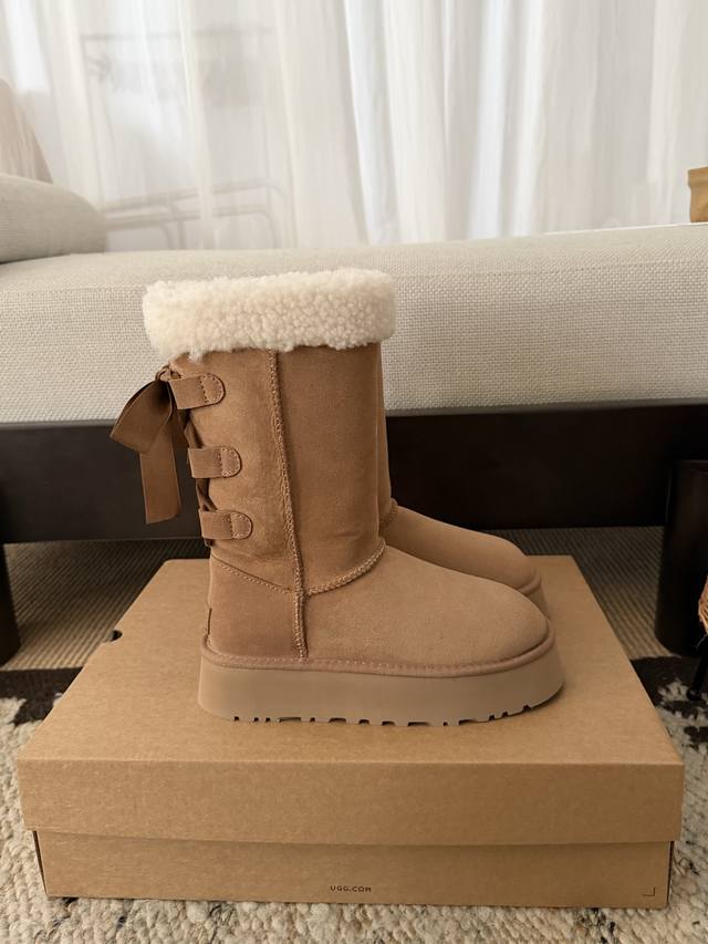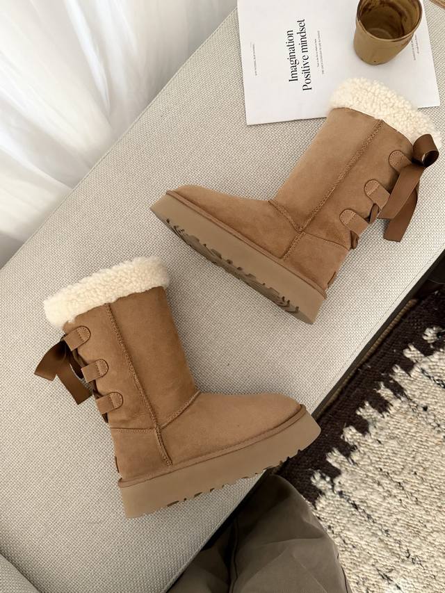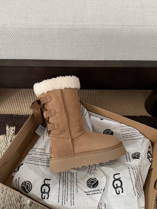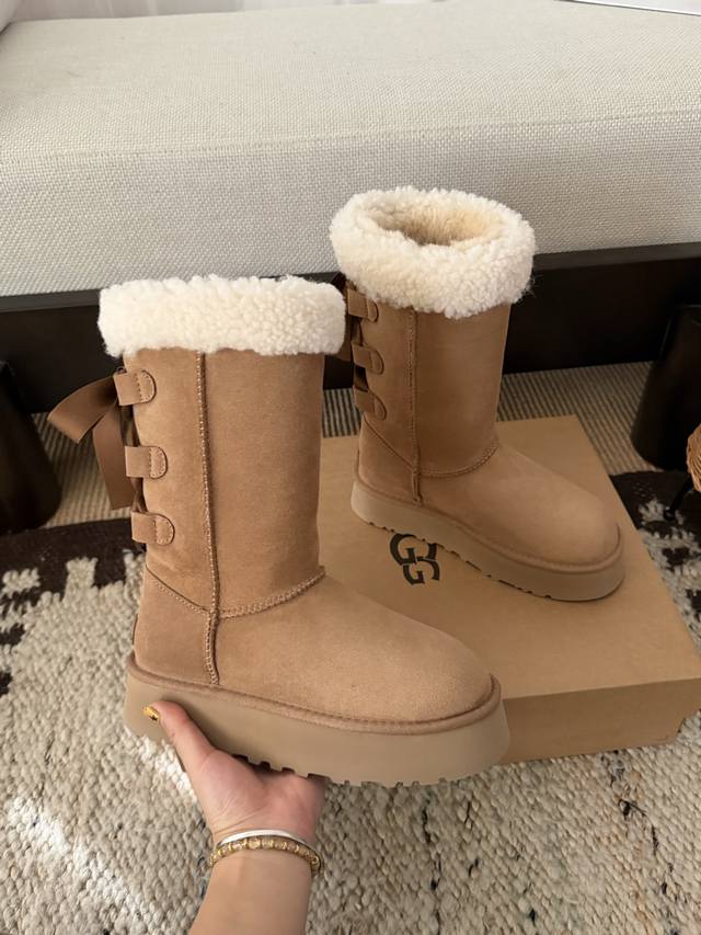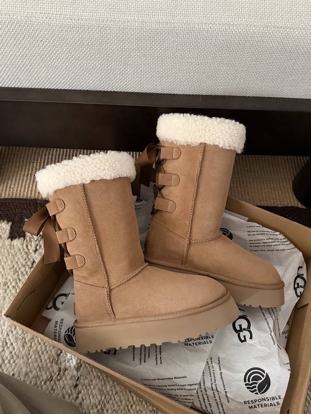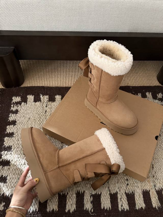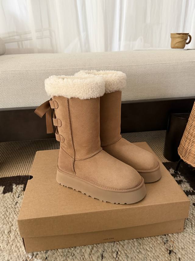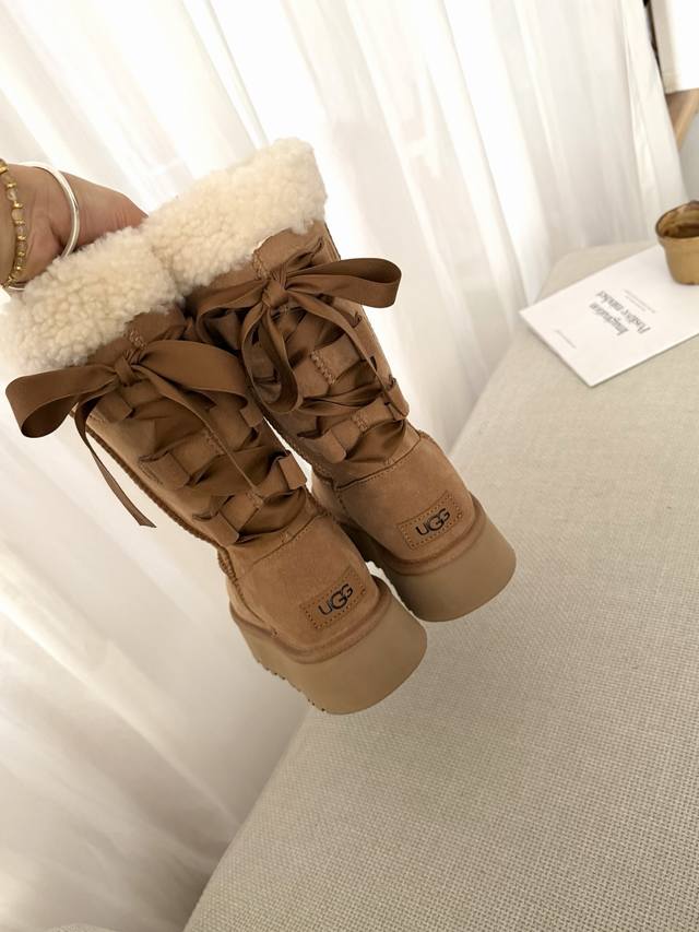 Ugg . Fairy Ribbon Platform High Boots DDD Super high-value high-top snow boots DDD 3cm platform invisible** Elongates the leg curves DDD The collision of shearling and ribbon elements DDD Full of autumn and winter atmosphere, a must-have! DDD Size: 35 40 DDD