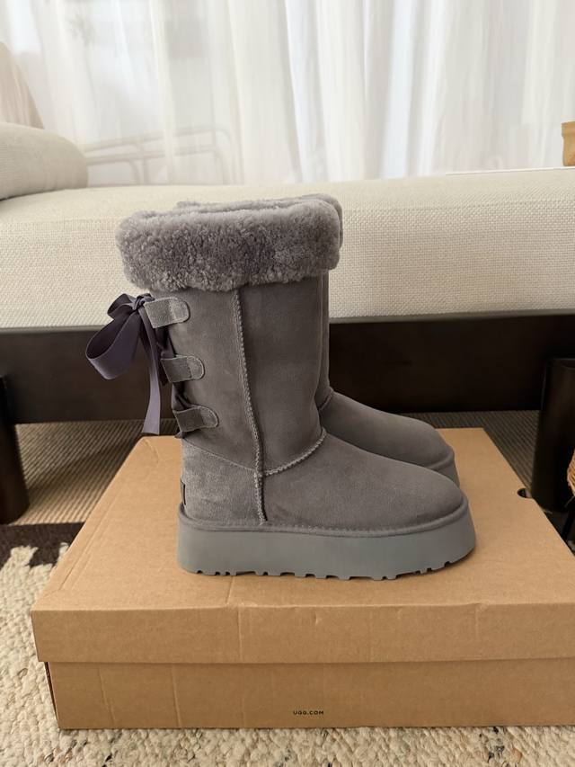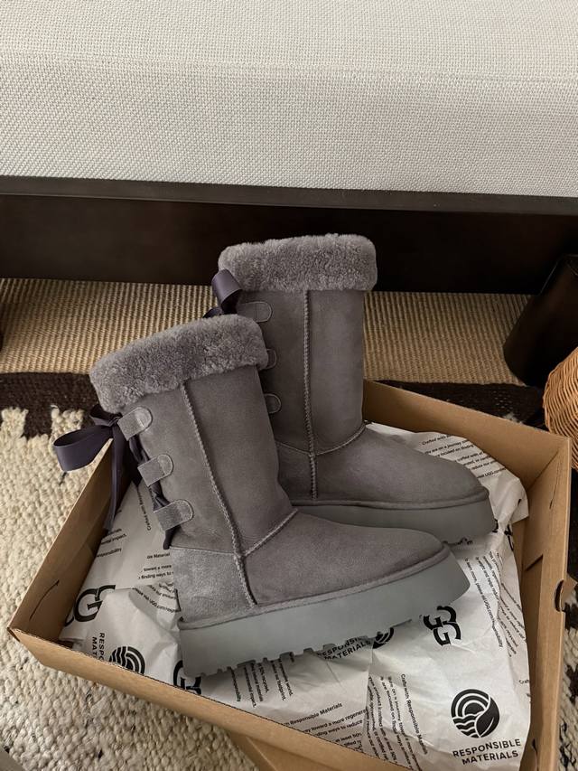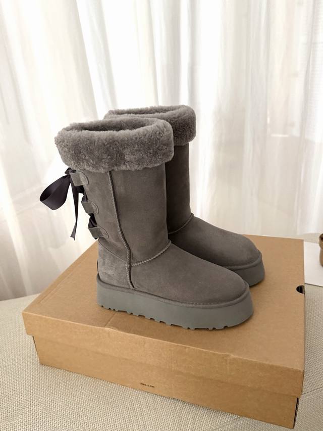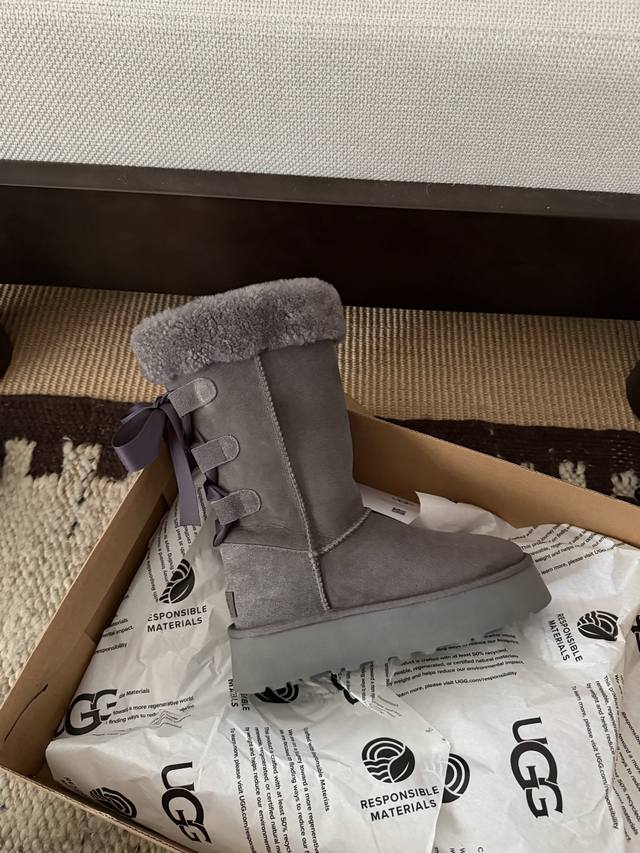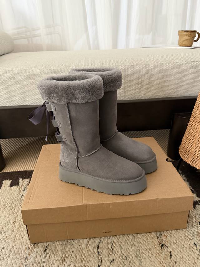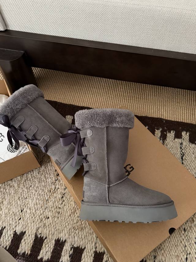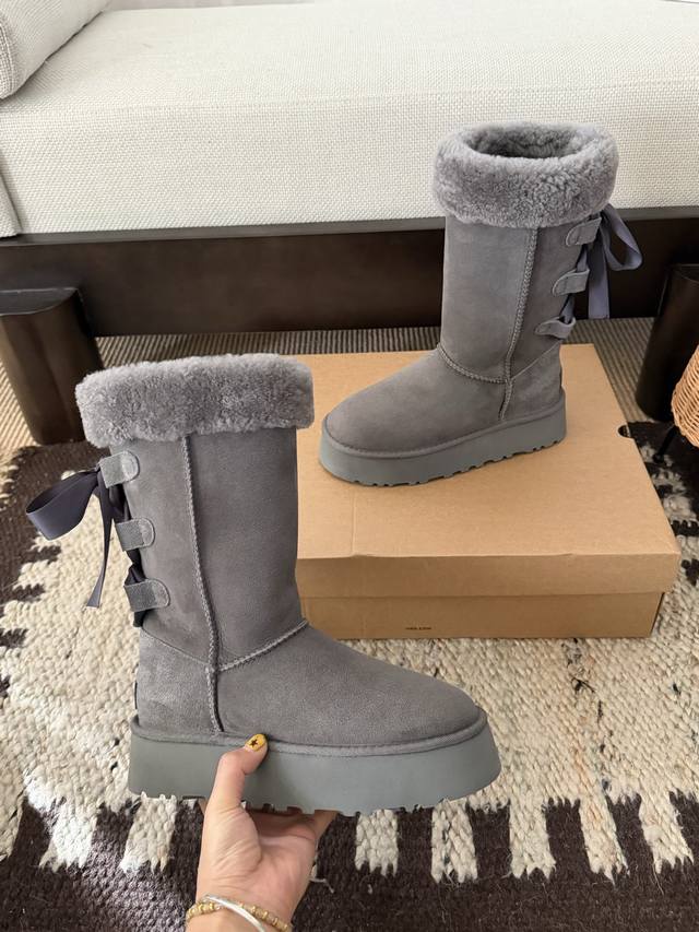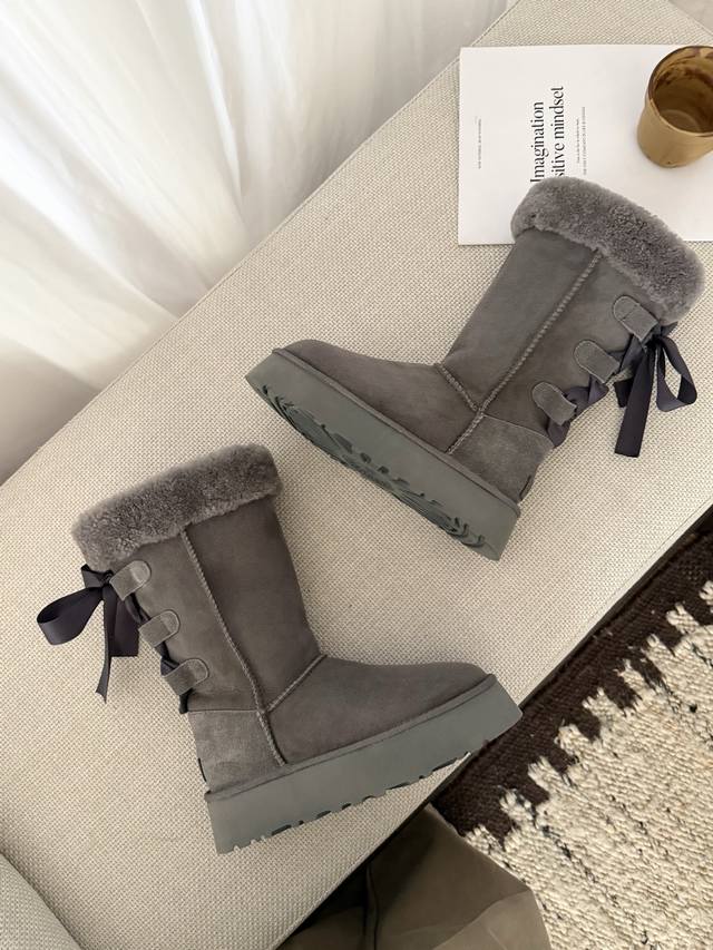Ugg . Fairy Ribbon Platform High Boots DDD Super high-value high-top snow boots DDD 3cm platform, invisible height increase, elongates leg curves DDD The collision of shearling and ribbon elements DDD Full of autumn and winter atmosphere, a must-have! DDD Size: 35 40 DDD