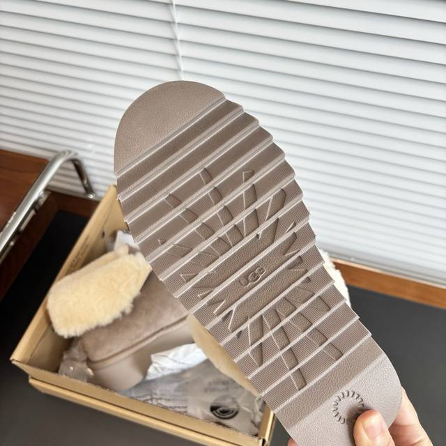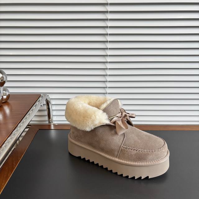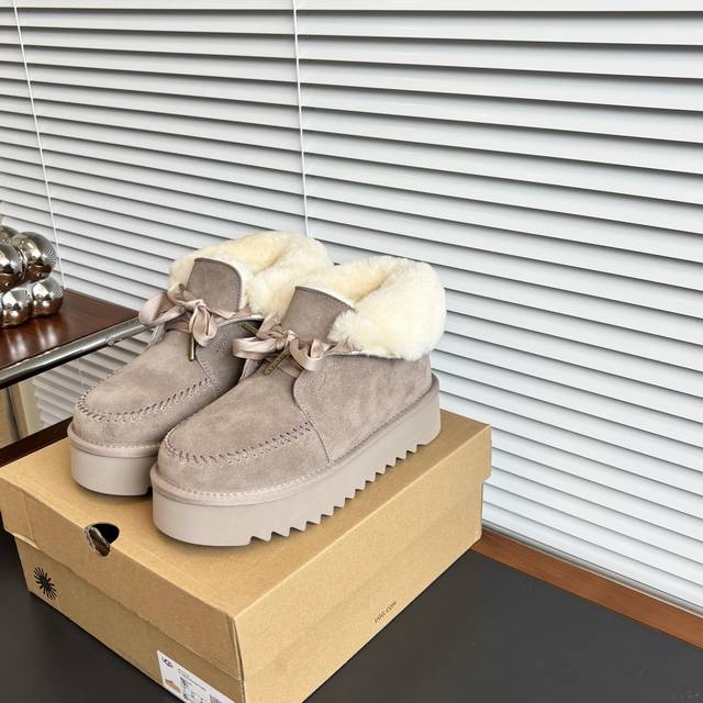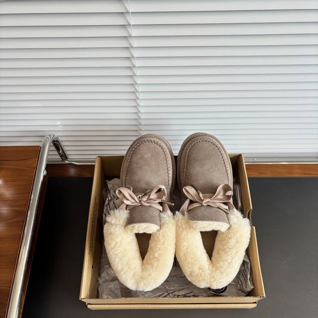 Ugg Karin platform loafers are so cute! The platform design subtly adds 5cm in height. The ribbon embellishment adds a touch of gentle sophistication. The foldable wool collar makes them a must-have for autumn and winter. Size: 35-40. Factory price: [Price not specified]