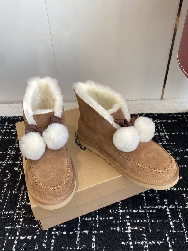 Check out your soft and creamy winter look, stepping into the warmth of clouds and instantly sweetening your street style~ Pom-pom + bow double buff, the plush lining makes you not want to take them off, instantly maximizing the autumn and winter street style atmosphere!