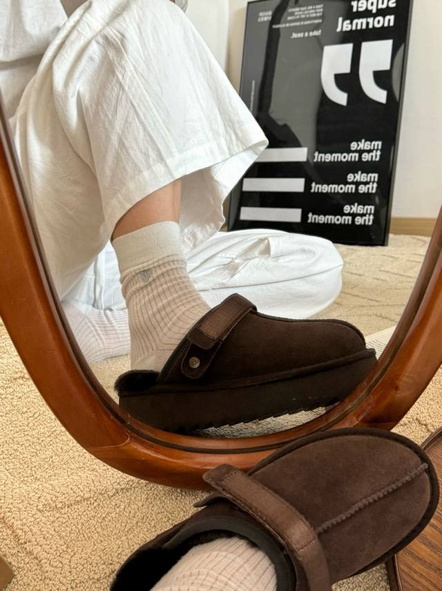 Ugg Lana Kroger platform shoes, made of dustproof suede, 17mm eco-friendly Australian sheepskin, with Velcro nylon back strap for versatile styling. Size: 35-41