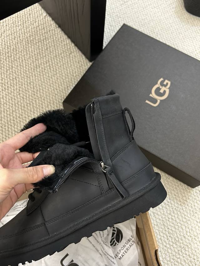 Ugg Men's Zippered Harland Series, Crazy Horse Leather. This leather has a matte finish and a double-color-changing effect from the oil and wax. Crazy Horse leather has unique scratches; the longer it's worn, the shinier it becomes