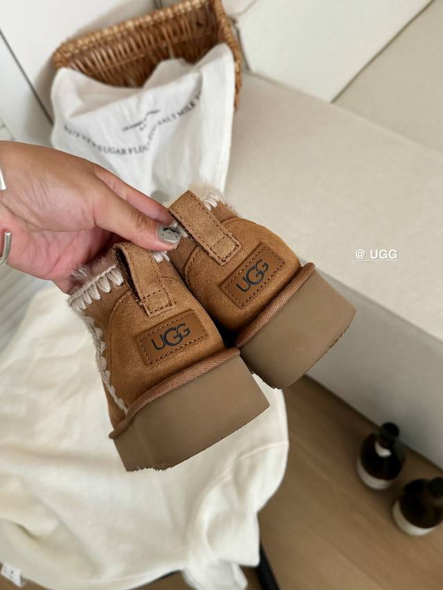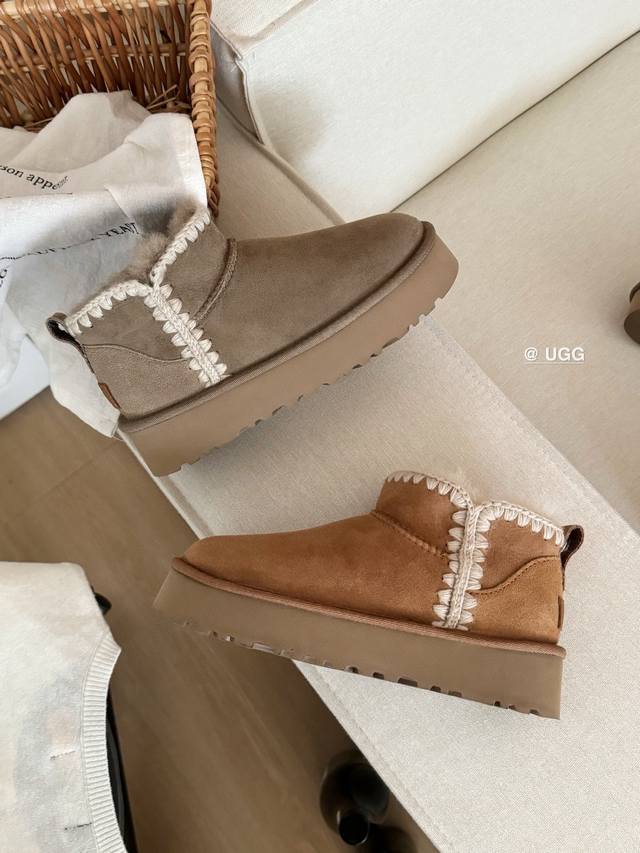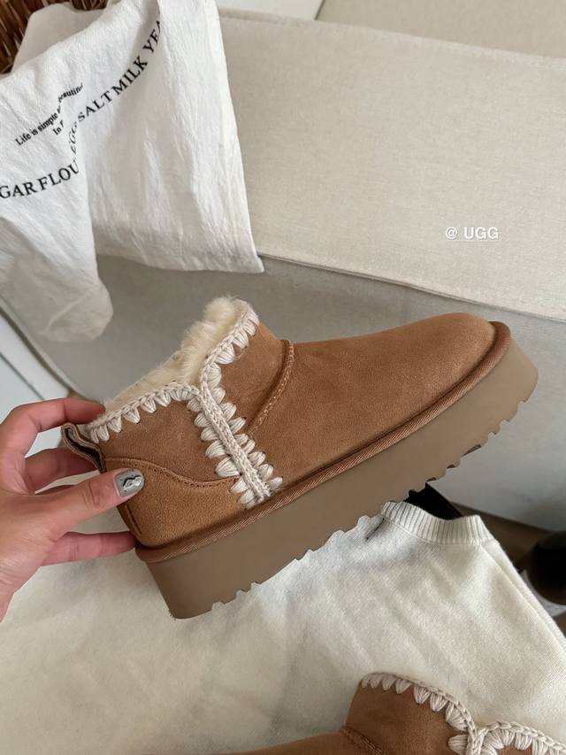 / Ugg Mini Platform Leather Shoes | Knitted A-Grade Sheepskin + Hand-Knitted Yarn,
