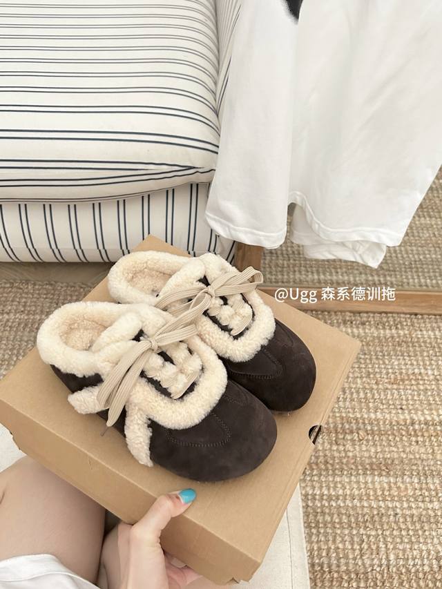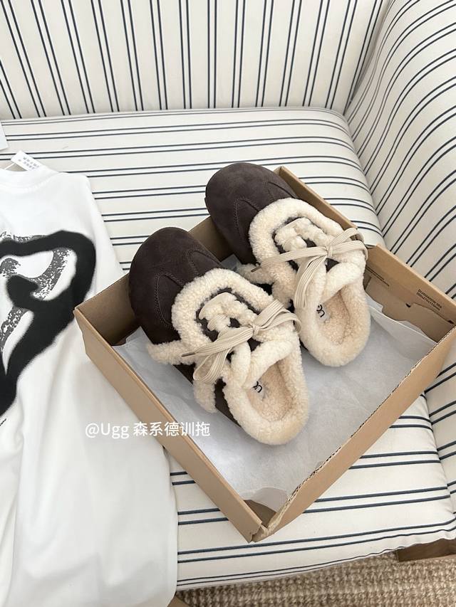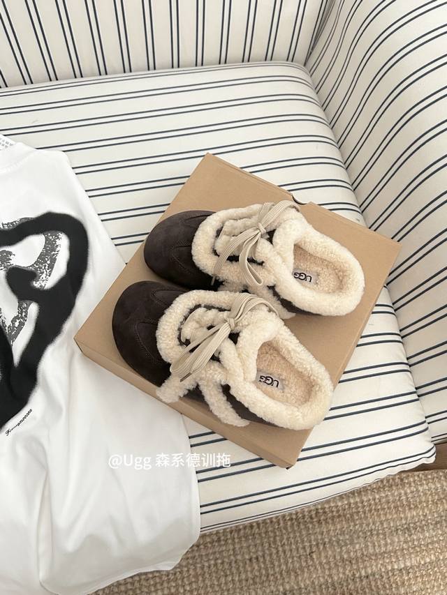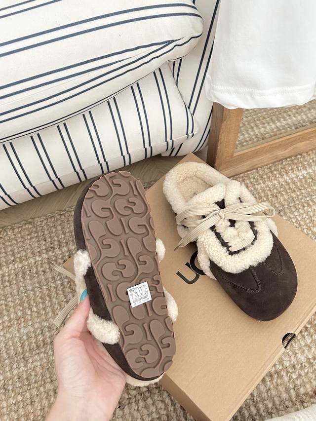 Ugg Mori Girl Style Fluffy Cute Casual Slippers, Niche Retro Fashion, Butterfly Design with Wool Trim, Three Colors: Chestnut, Brown, and Rapeseed! Sizes: 35-40!