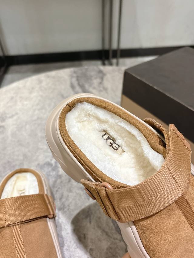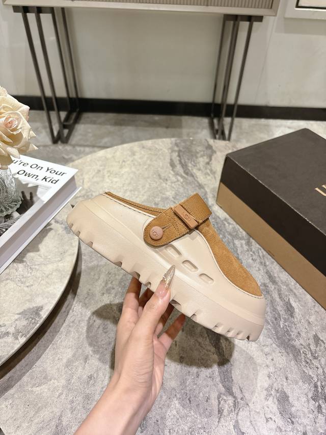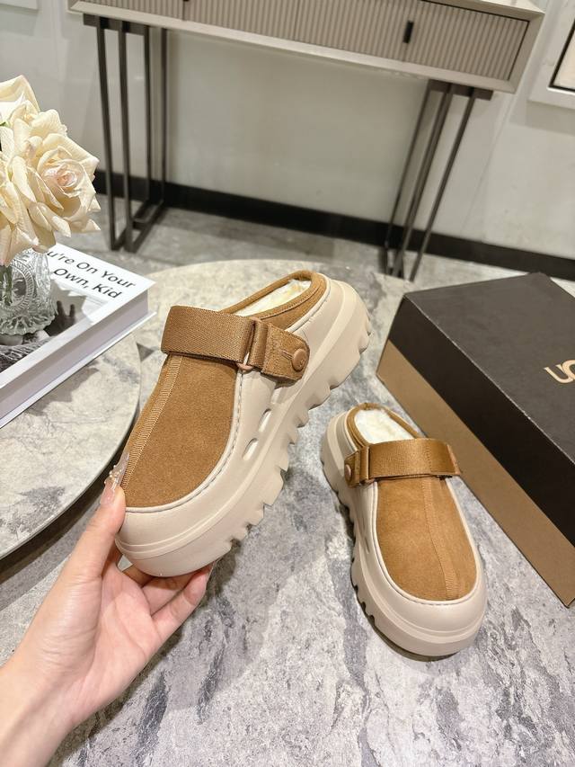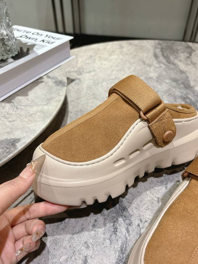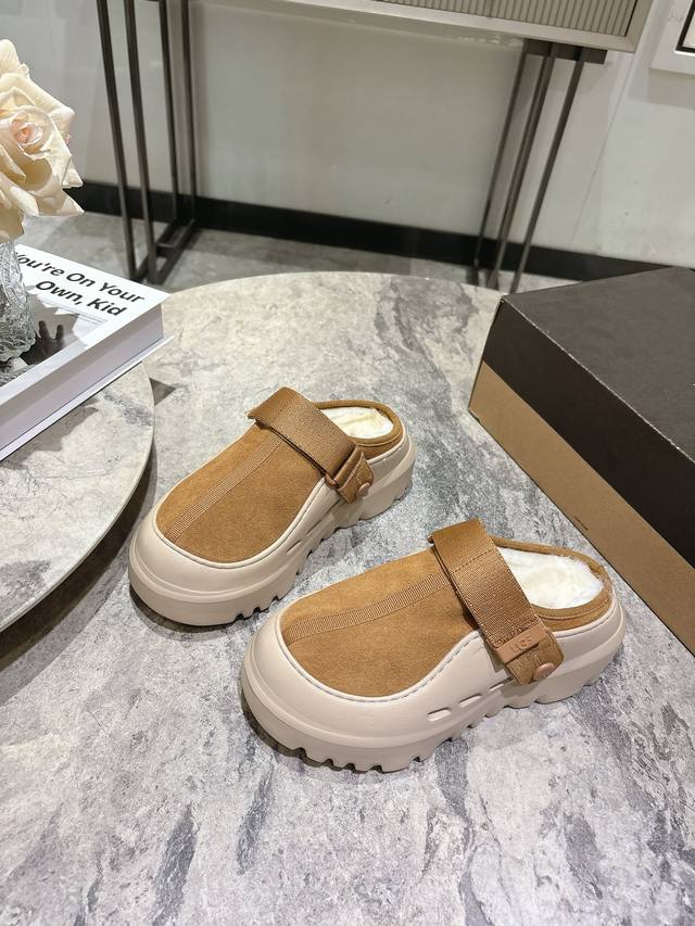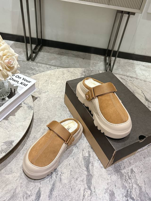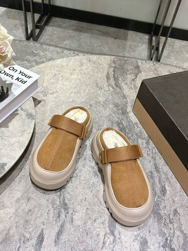 Ugg New Birken Wool Platform Slippers, Chubby Little Dumb Slippers, Suede Upper, Foam Outsole, Original Pure Wool Lining, Versatile and Stylish! Size: 35-39, 40 Made to Order