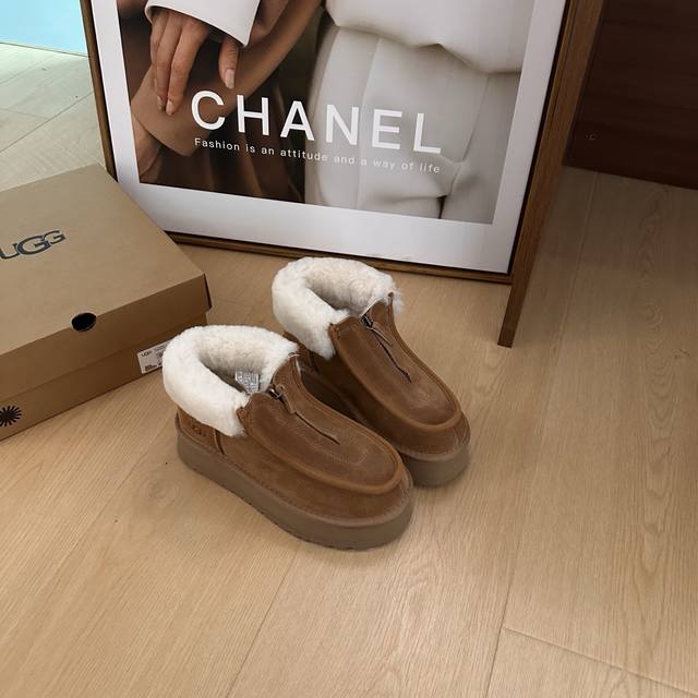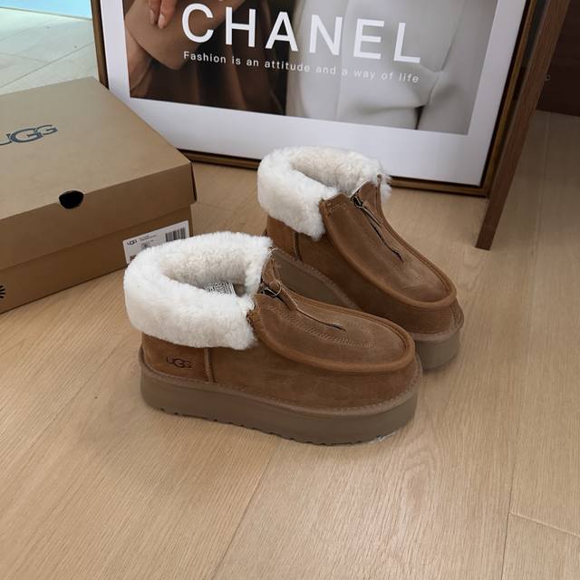 Ugg official website synchronized! Classic reappearance! Women's classic funkette boot with thick sole and zipper. Material: DDD Split cowhide sheepskin outsole: DDD Ugg classic chestnut color item! DDD Funkette boots with a comfortable, platform sole for added height and a youthful feel DDD Simple and neat classic mini ankle boots, fashionable and versatile DDD Square toe zipper design for easy on and off and stylish DDD Size: 35-40 DDD