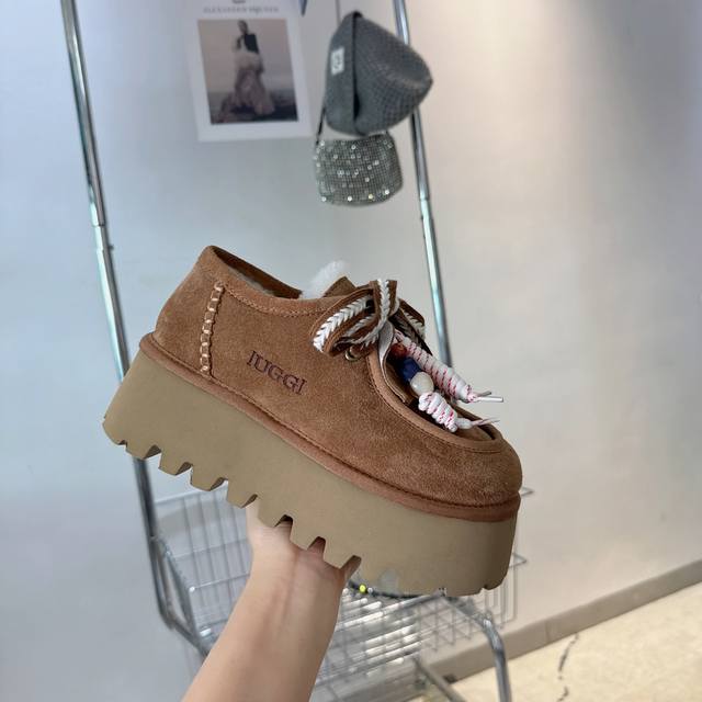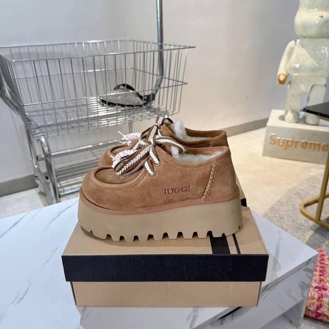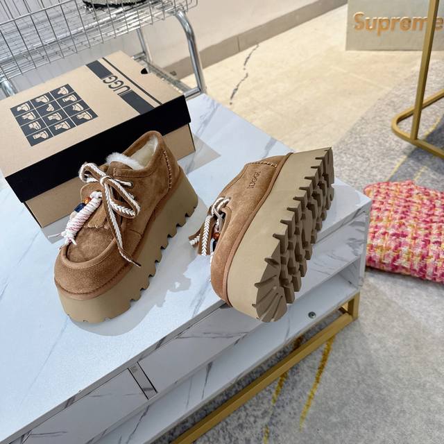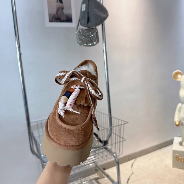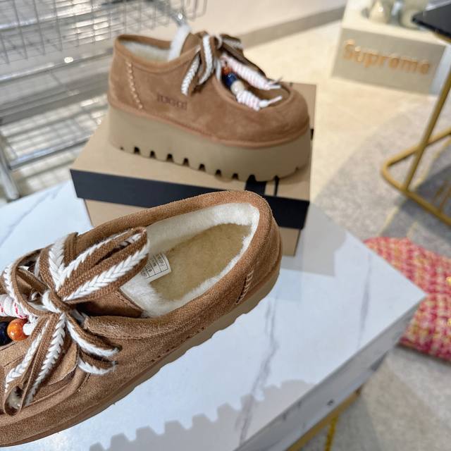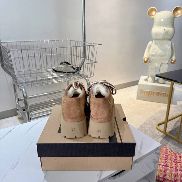 Ugg platform lace-up snow boots are a must-have for fashionistas. They pair well with both long and short outfits in autumn and winter, and are incredibly flattering. A must-have for women this fall and winter. These warm boots are from Australia, a versatile new style, made with Mra-grade mocha wool, top quality. The suede upper and wool lining create a perfect match. The simple and stylish wide-brimmed, durable, and lightweight foam sole exudes elegance and sophistication. They're resistant to extreme cold and won't break in the cold. 5-star anti-slip and wear-resistant. Sizes: 35-40.