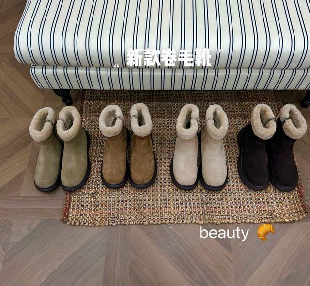 Ugg Retro Curly Fleece Boots: Bring the gentleness and individuality of autumn and winter into everyday life with just one step! Sizes 35-40! When vintage-style distressed suede meets soft, plush wool trim, every step is a duet of warmth and style. The wool trim is incredibly soft and cozy, with a 4cm thick, soft rubber insole for added height. This autumn and winter, don't let your outfits become monotonous! Choose these boots and pack Ugg's classic comfort and unique design into your daily life, switching effortlessly between a relaxed and eye-catching style, from the street to your cozy home!