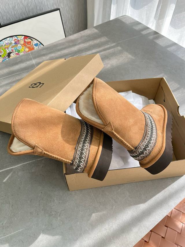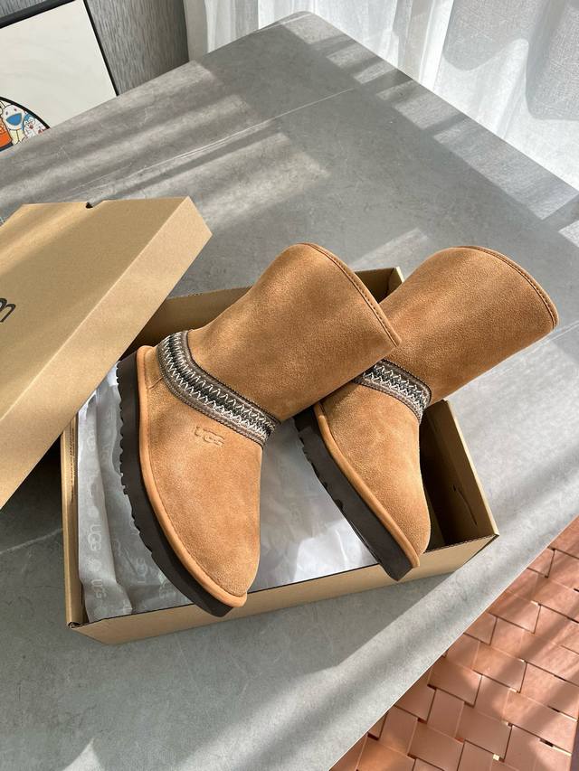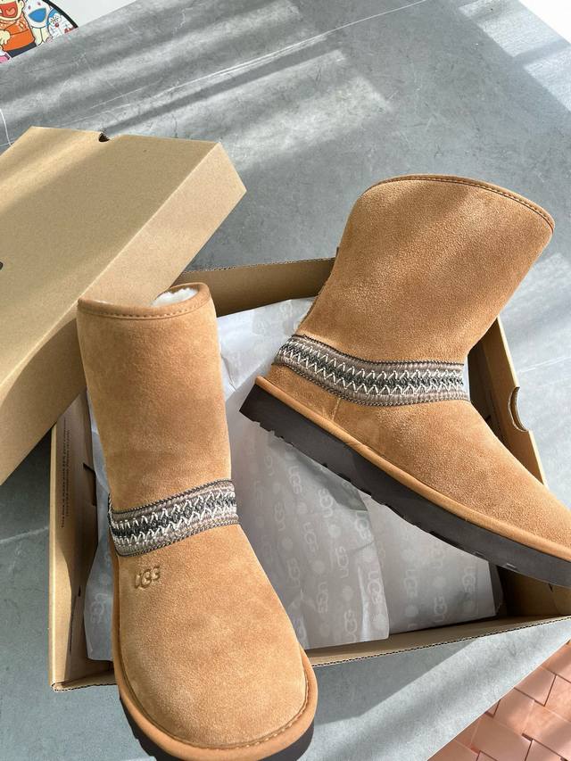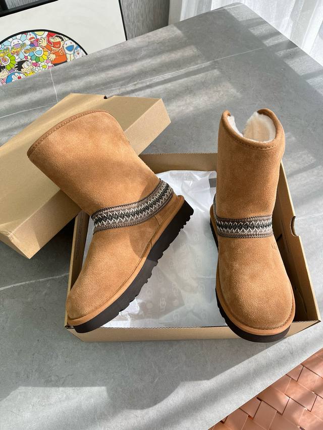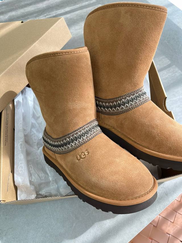 Ugg Snow Boots Autumn/Winter New Classic Ankle Boots Crescent Series! Retro Style, Warm and Luxurious. The upper is made of carefully selected cow suede, crafted with ingenuity to prevent creases, eliminating the embarrassment of traditional ankle boots that easily wrinkle. It looks neat and stylish on the foot, providing exceptional comfort. Unique ethnic woven elements add a touch of vibrancy to the simple design, maintaining individuality. The 17mm shearling lining is warm, soft, and delicate, providing ultimate protection in cold weather. A perfect blend of function and aesthetics. Exquisite suede trim not only outlines a luxurious silhouette but also symbolizes durable quality. The delicate touch and luxurious materials complement each other perfectly! The lightweight and agile EVA outsole is a key feature of this ankle boot, offering excellent resilience and abrasion resistance. Whether paired with jeans or a casual skirt, these ankle boots are versatile enough to fit any size: 35, 36, 37, 38, 39, and 40.