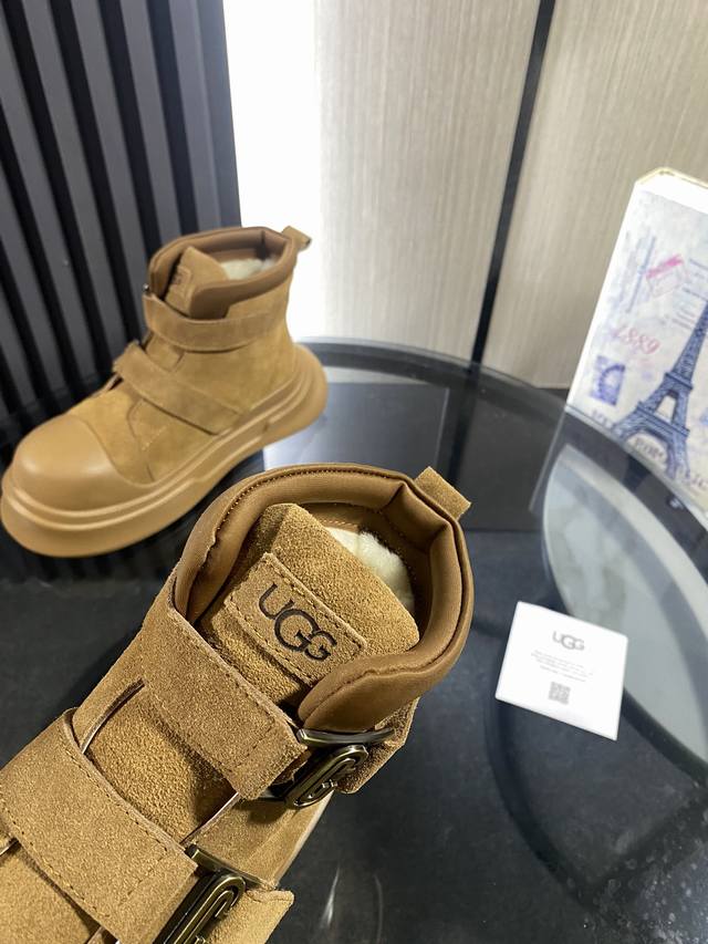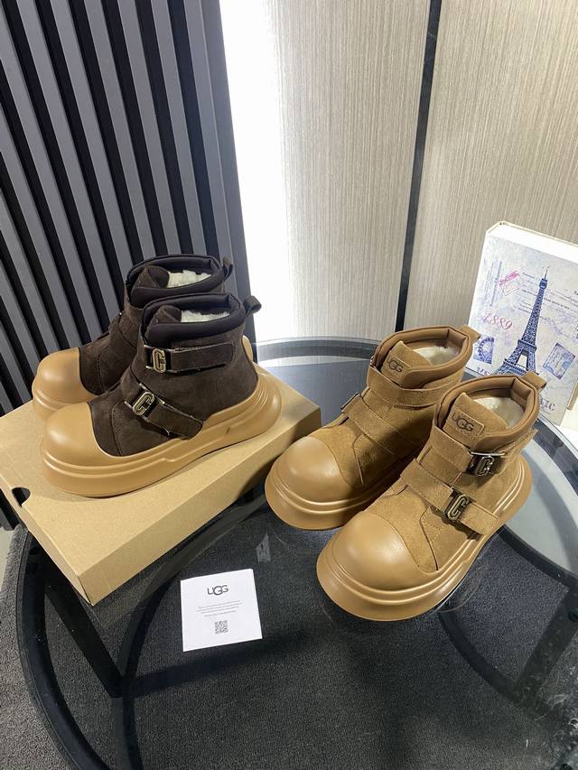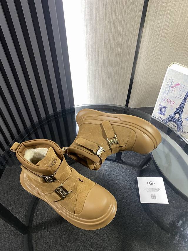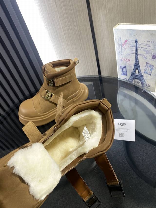 Ugg snow boots, in stock and easy to get. A must-have for women in autumn and winter. A warm and versatile 2025 new style, made with Longfeng A-grade wool, top quality. The suede upper is a perfect match with the wool. High-elastic foam sole for comfort, showcasing exceptional style and sophistication. Antique bronze alloy buckles, durable in extreme winter temperatures, 5-star wear resistance. Colors: Chestnut, Brown. Sizes: 35-40.