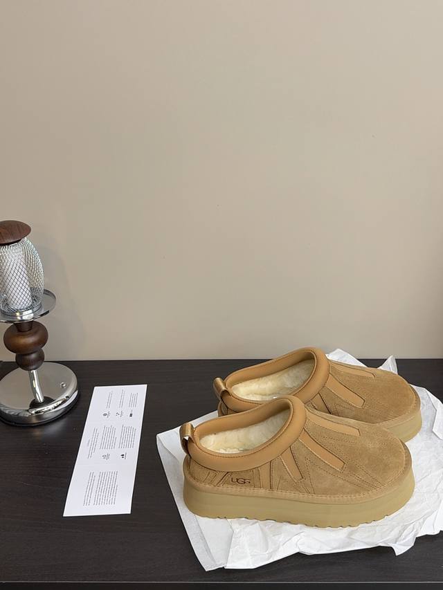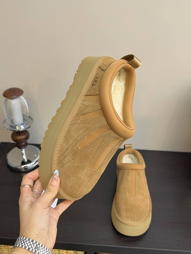 Ugg Sunflower Tatst DDD Women's Slip-on Thick-soled Snow Boots 2025 Winter New Style Fleece-lined Thickened Leather Fur Integrated Warm Cotton Shoes DDD Colors: Chestnut, Mustard Seed DDD Sizes: 35-40 DDD