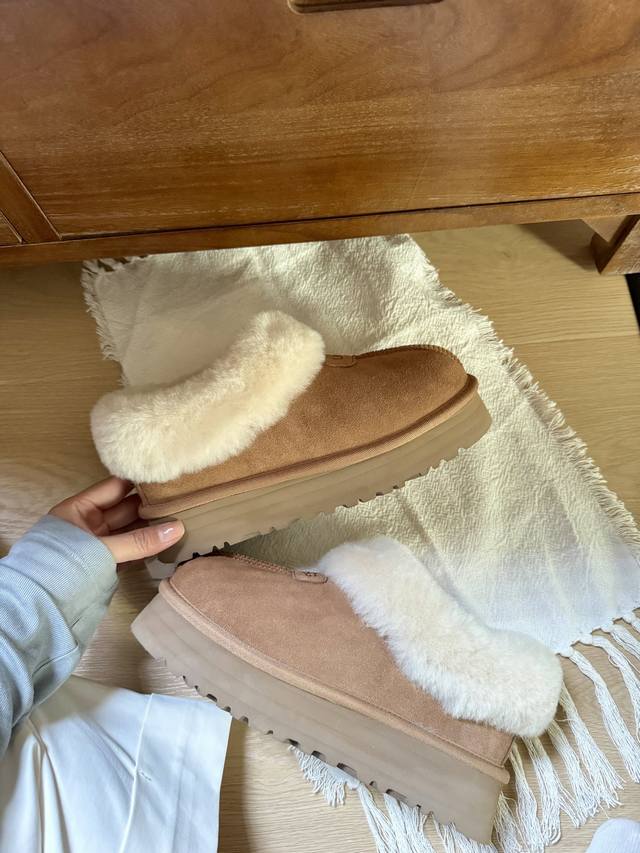 Ugg Tachite Thick Sole. Soft and gentle style. This year's latest thick sole element definitely lengthens the legs. Longfeng Grade A fur, warm and textured. Size: 35-40. Factory price: [Price missing]