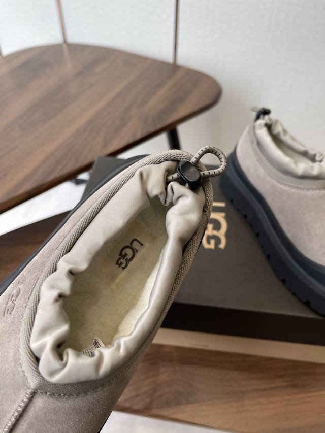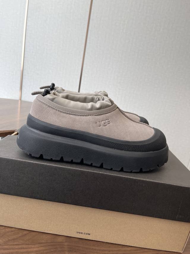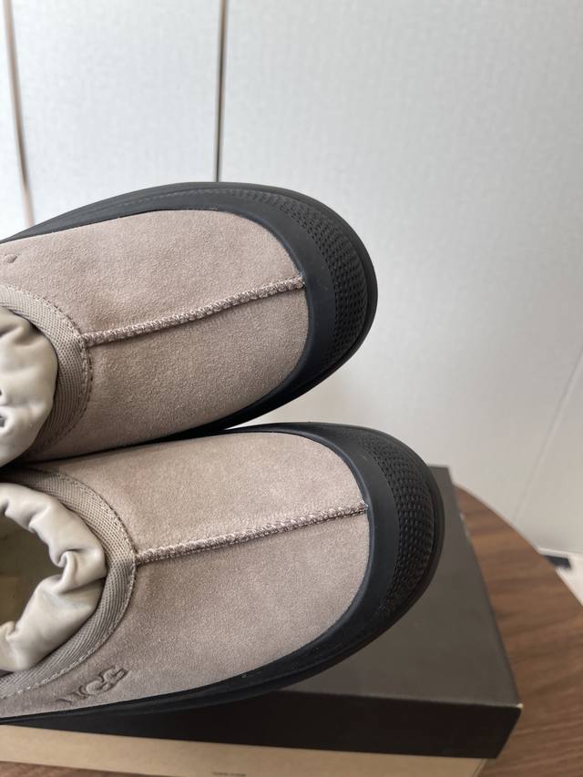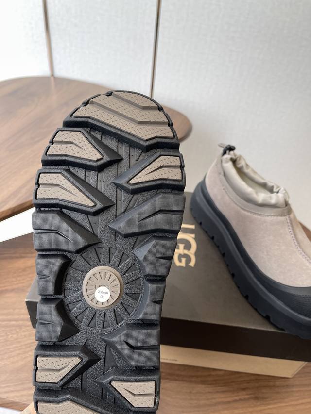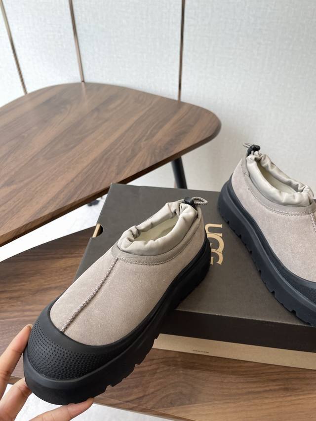 Ugg Tasman Weather Hybrid unisex slip-on shoes feature a classic Tasman silhouette with a functional color-blocked design and a bright orange sole. Made with eco-friendly, waterproof, and snowproof materials, they combine style and functionality . Pair them with the new Ugg Keane fur-trimmed color-blocked jacket for a fresh, light outdoor style and a new early autumn travel experience. Made with premium materials, the 17mm shearling upper provides warmth and breathability. Upper: Cow suede; Lining: Sheepskin; Outsole: EVA foam. Size: #Women's 35-40 #Men's 39-45 Size 45 is custom-made and non-refundable.