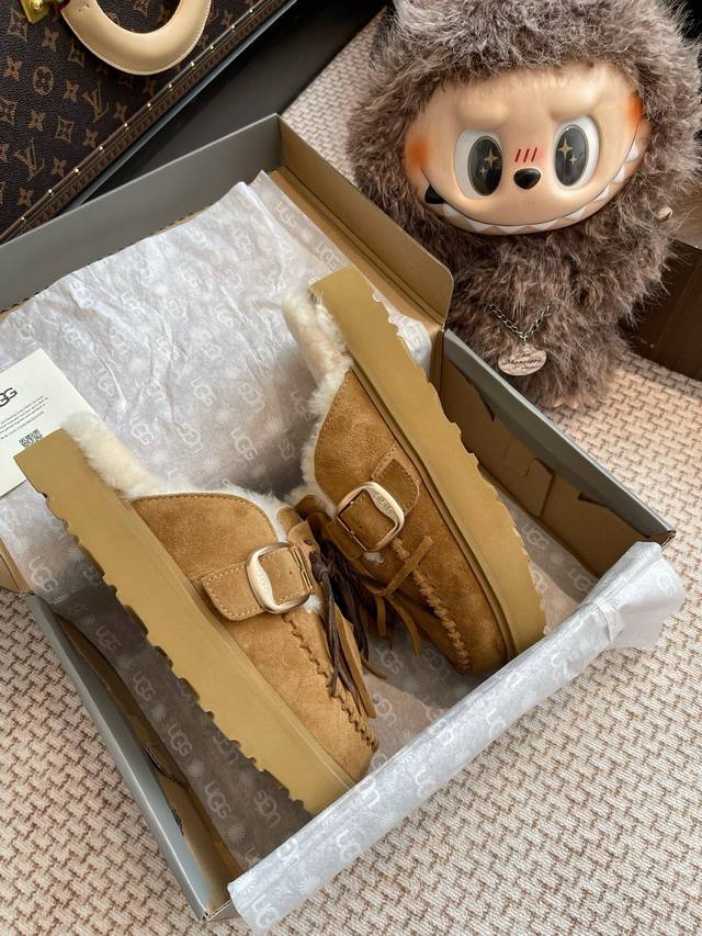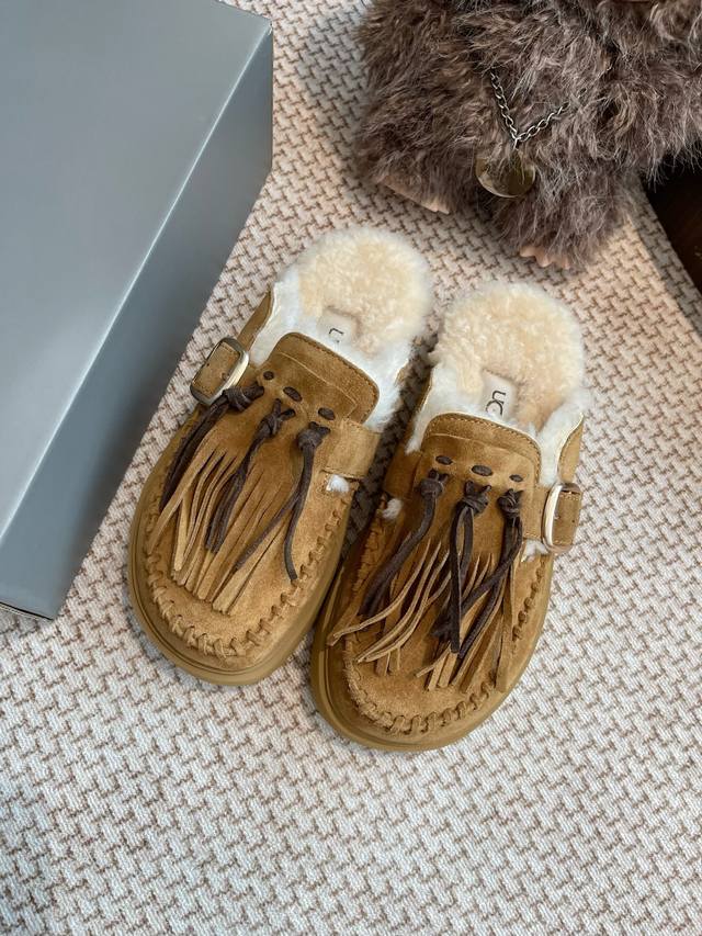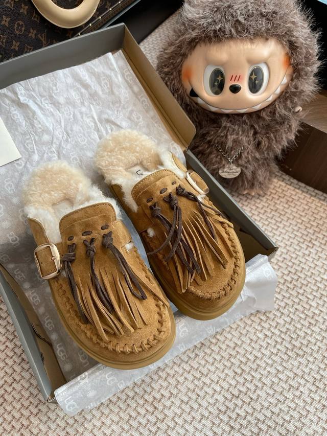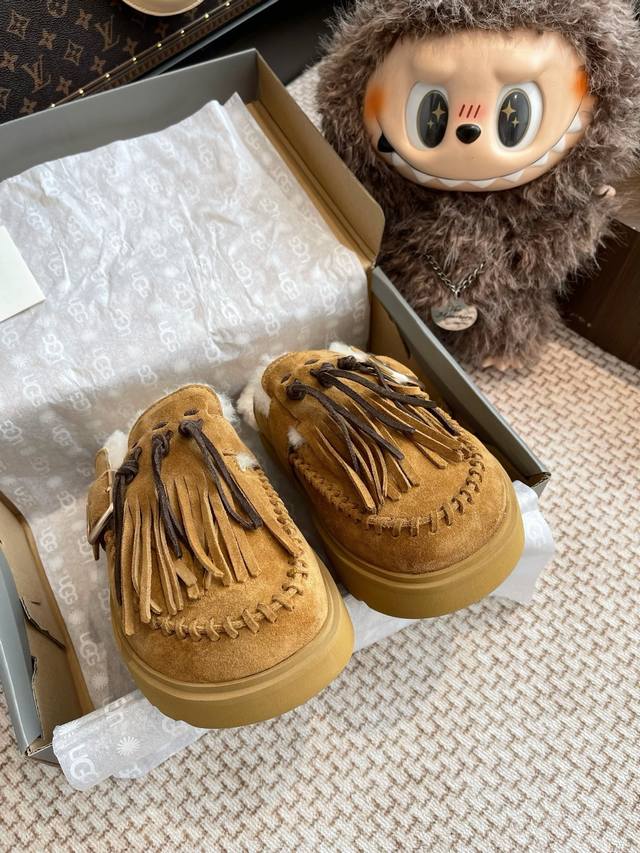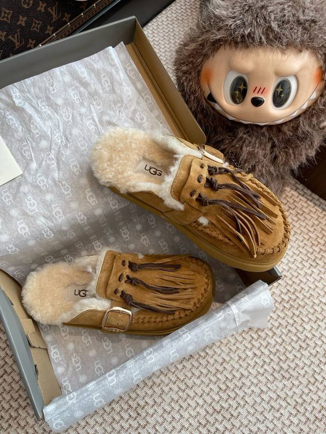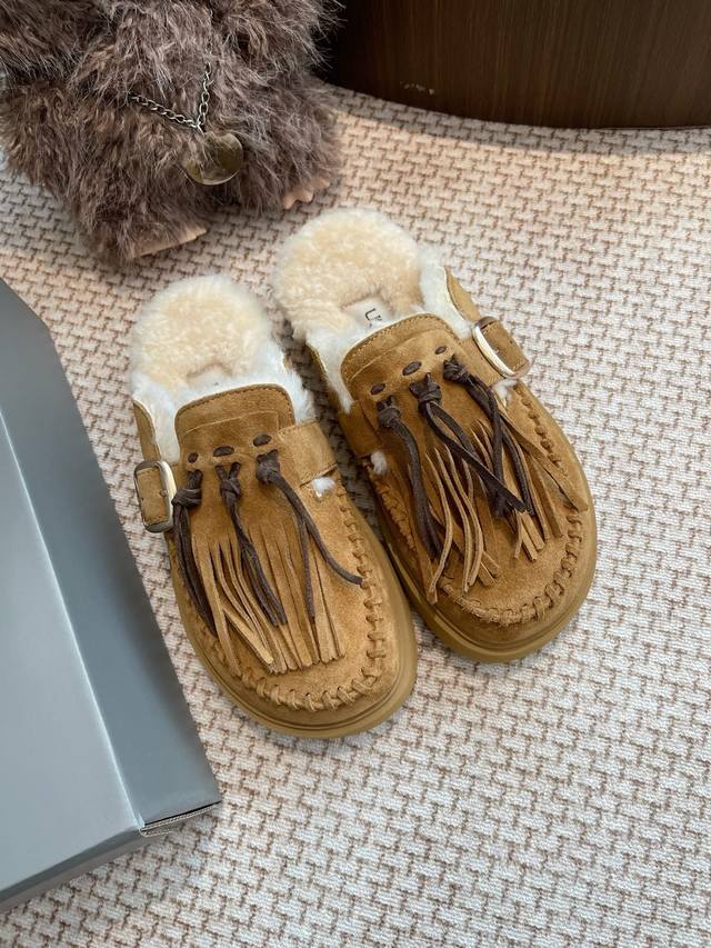 Ugg tassel mules, this pair is made entirely from authentic materials, featuring a custom-molded outsole and meticulous attention to detail. Even the packaging is identical to the genuine product. Sizes: 35-40 DDD