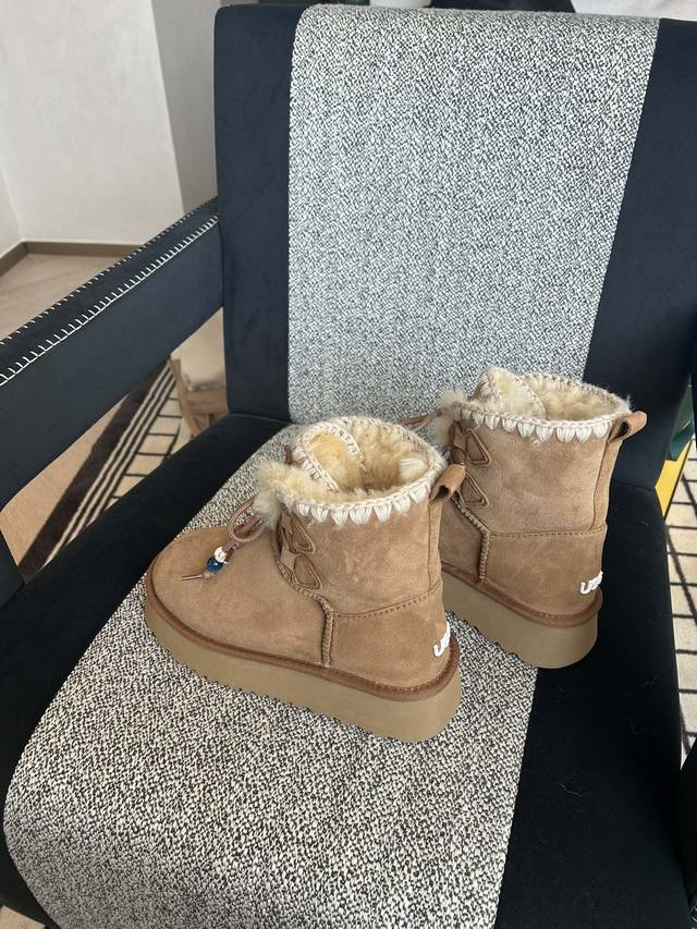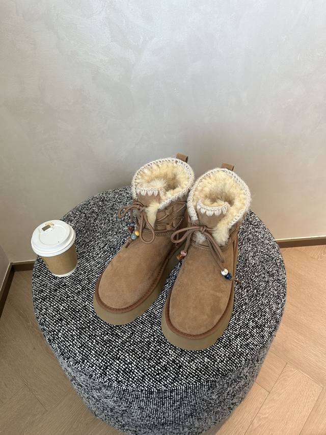 Ugg Tassel Snow Boots: Bringing the romance of bohemian style into the warmth of autumn and winter. The upper has a luxurious feel, with fluffy fur that hugs your feet like clouds. Colorful beads and tassel embellishments add a touch of exotic romance. The platform sole subtly elongates the legs, making them perfect for pairing with skirts or trousers. They keep you warm while exuding a unique retro-chic vibe. This autumn and winter, let your feet fall in love with both softness and style! Sizes 35-40