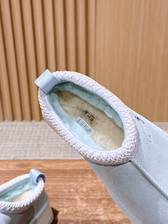 Ugg Tazz Thick-Soled Slip-On Furry Snow Boots DDD New style furry slippers with ethnic-style woven embroidery, retro yet fashionable, super comfortable slip-on, worn by many celebrities, its popularity on Instagram and Xiaohongshu needs no introduction, always sold out during the season! Thick and luxurious leather and fur! This Tazz boot is different from classic snow boots; its shape is more like a half-slip-on, easy and comfortable to put on and take off, a favorite for many lazy people DDD Material: Original custom imported top-grain cowhide DDD Lining: Original custom warm wool DDD Outsole: Original molded ultra-light foam material DDD Sole thickness: 4.5cm DDD Size: Women's 35-39, 40 custom orders are non-refundable DDD