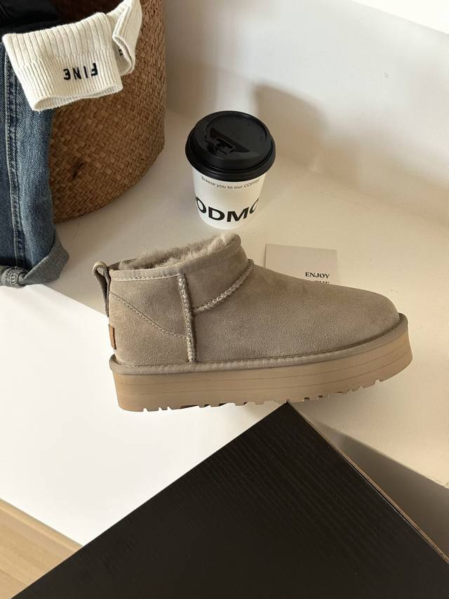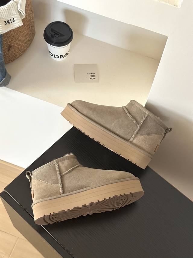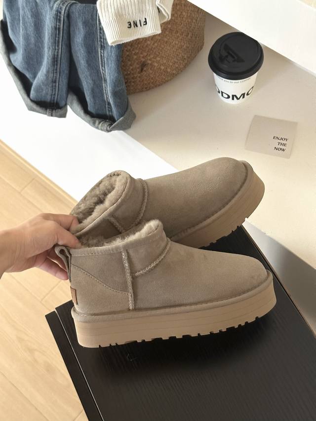 Ugg Thick-soled 3cm Mini Snow Boots, Longfeng Original Factory Grade A Leather and Fur, High-elastic Sole, Stylish and Versatile, Most Importantly, Makes Legs Look Longer! Available in Six Colors. Please specify "3cm Thick Sole" when ordering! Size: 35-40
