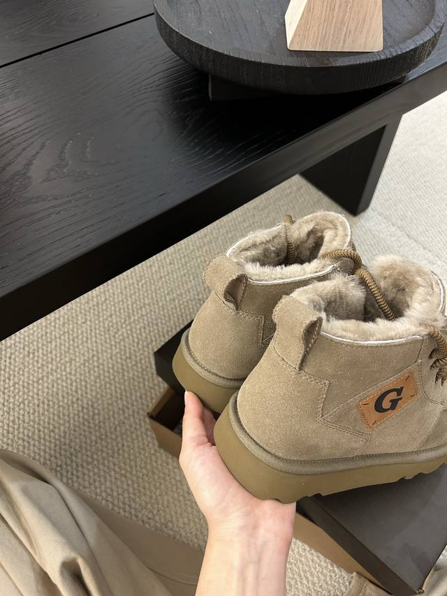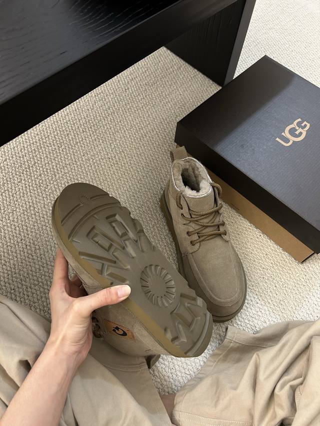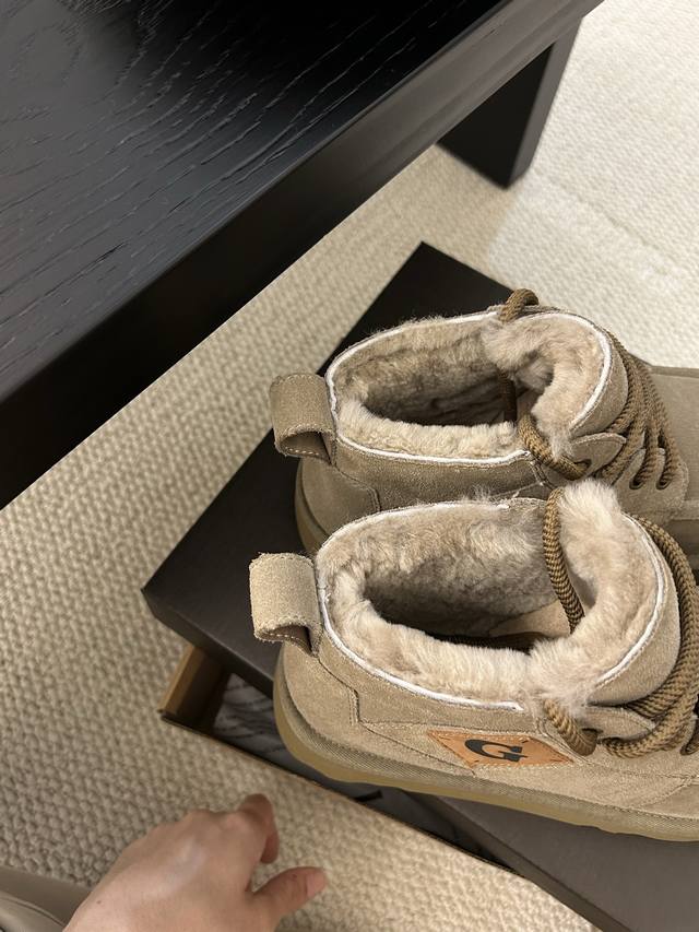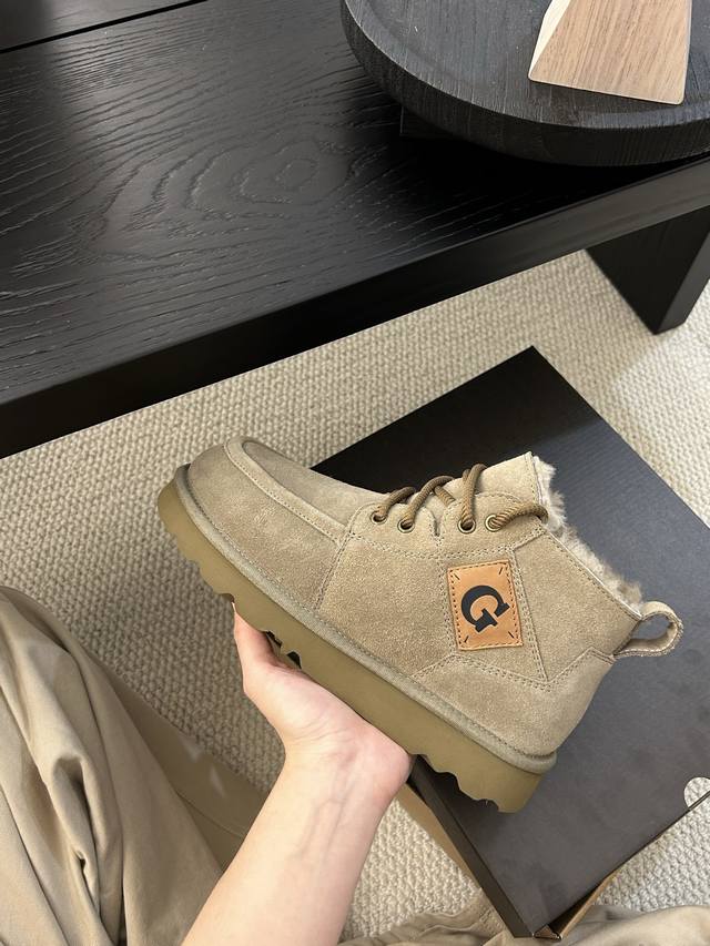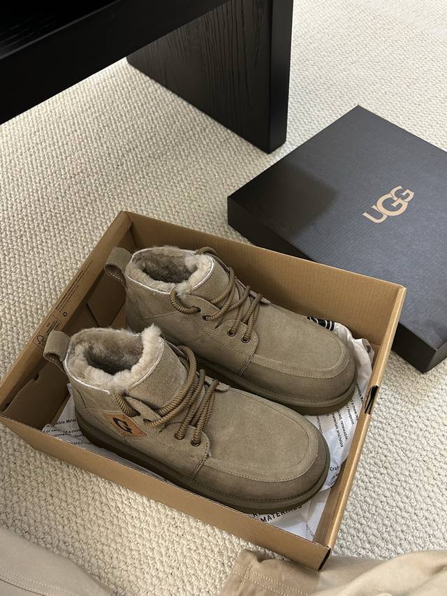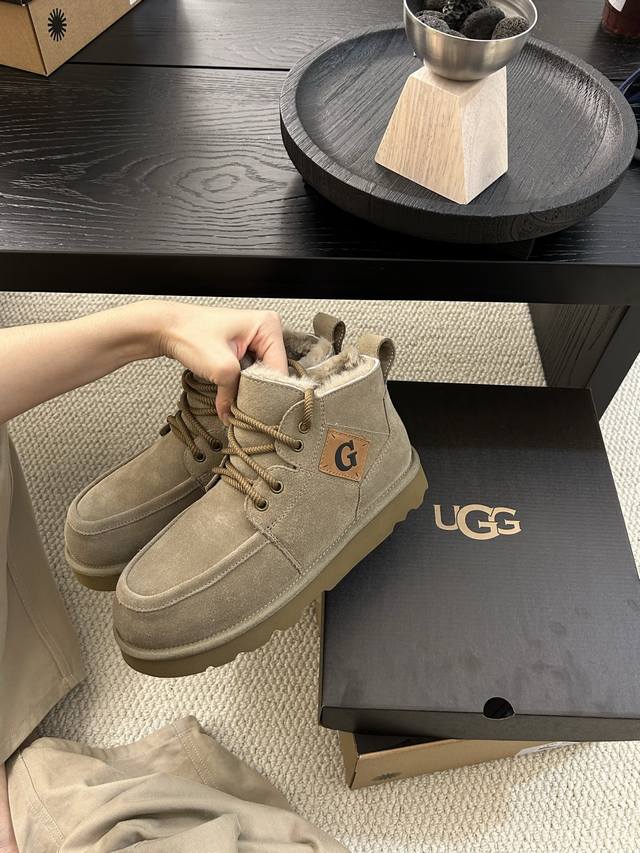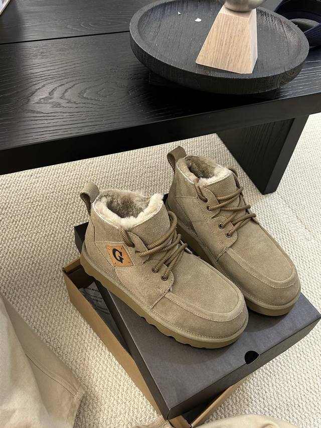Ugg Winter New Men's Fashionable Comfortable Thick-Soled Lace-Up High-Top, Cowhide and Wool, a Must-Have for Men.