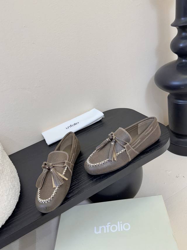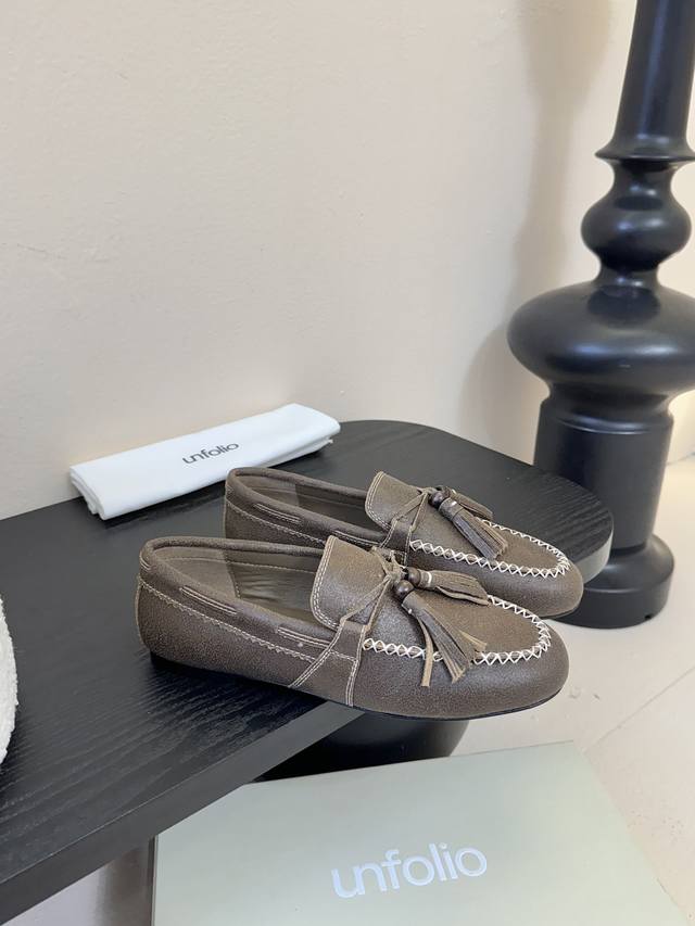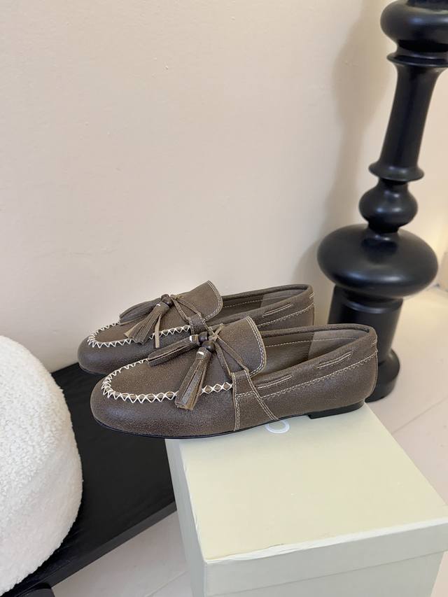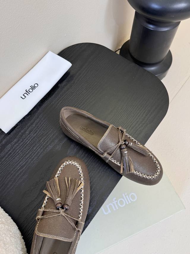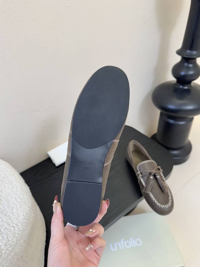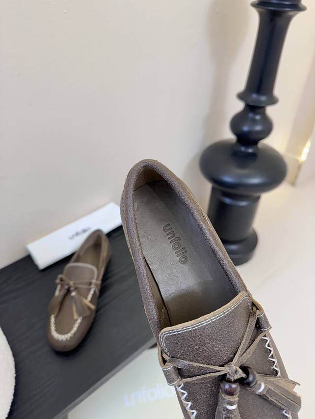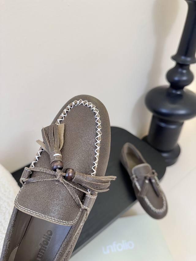 Unfoli* Retro Minimalist Tassel Flat Loafers DDD Made of suede, soft to the touch with a sophisticated matte finish. The design is detailed, featuring tassels, decorative beads, and visible stitching, giving it a refined yet retro feel. These slip-on loafers are easy to put on and take off, suitable for everyday commutes or casual occasions. DDD The color scheme is a low-saturation brown tone, understated and versatile, easily blending with different styles. The shoe shape conforms to the foot, and the flat design balances comfort and a sleek look. DDD Upper: Cow Suede DDD Lining: Sheepskin DDD Outsole: Rubber Outsole DDD Height Increase: 2cm DDD Size: 35-41, Size 40 is custom-made and non-refundable DDD