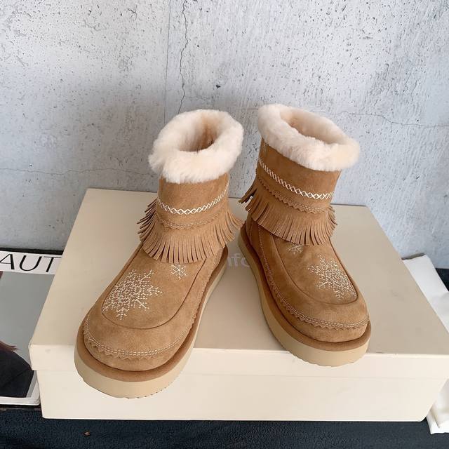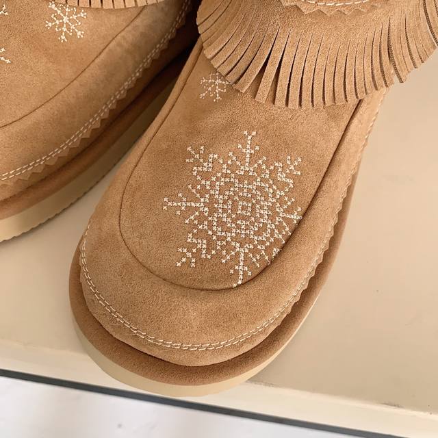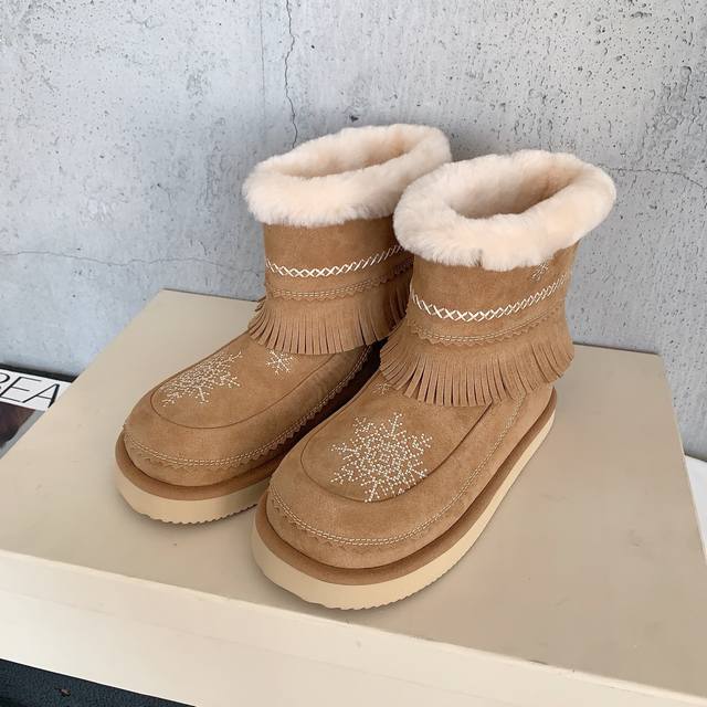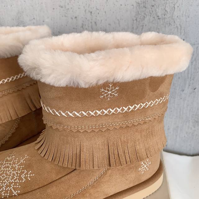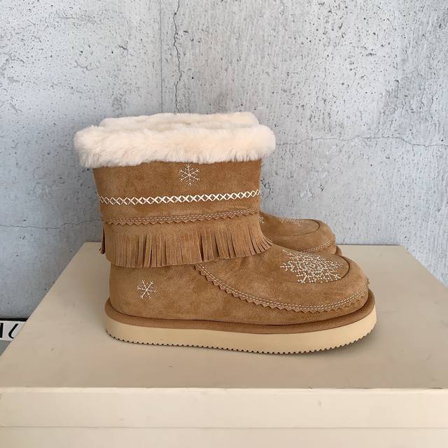 Unfolio 2025 Autumn/Winter Retro Snowflake Snow Boots. These snow boots are love at first sight. Like a letter from winter, snowflakes fall, snowflakes are the message, tassels are the melody