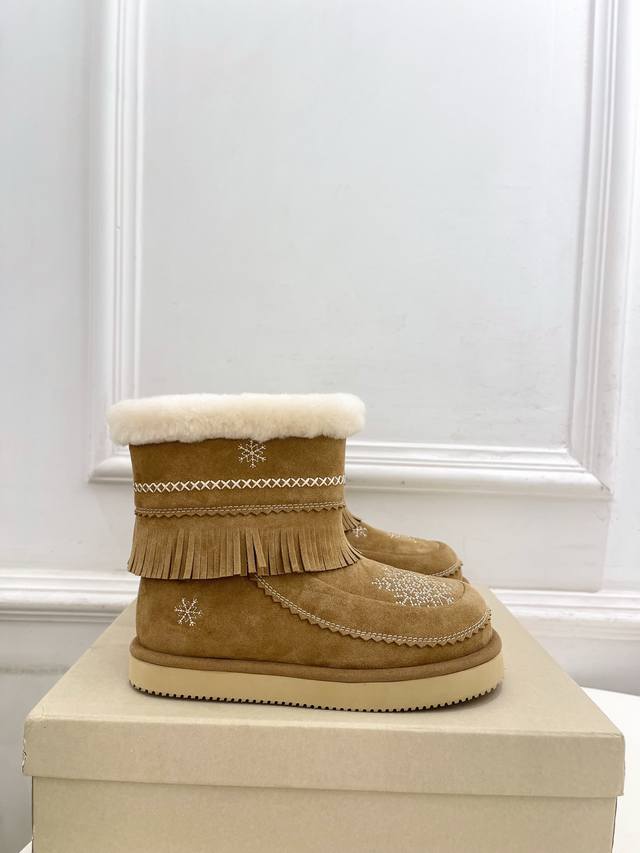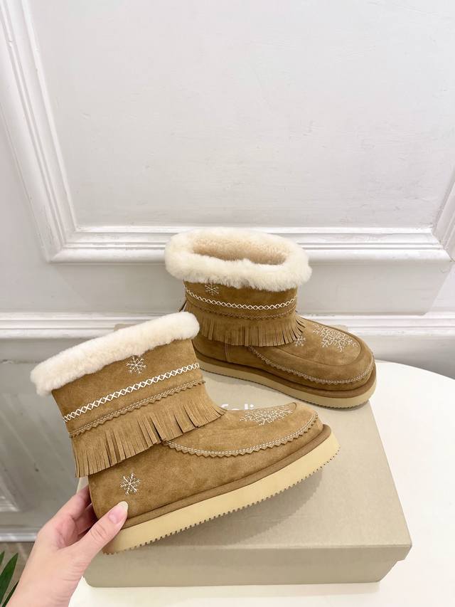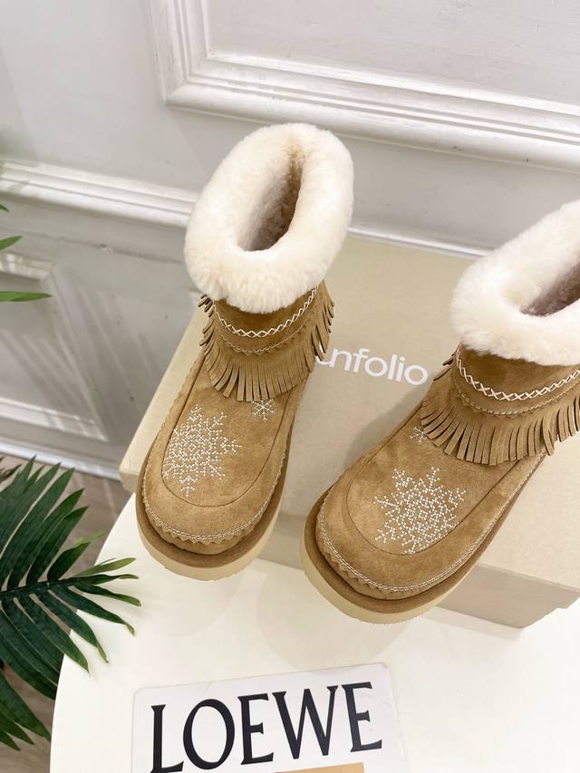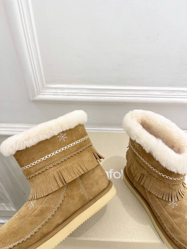 Unfolio 25 Autumn/Winter New Retro Embroidered Snowflake Furry Snow Boots DDD As one of the most popular genius designer brands in the past two years, the simple design and luxurious texture will make you fall in love with them. If you don't want to see everyone else wearing the same thing, you can check out this brand. It's relatively niche, but so easy to match. You can see this brand everywhere on Instagram and Xiaohongshu! 1:1 Original Custom Made DDD Upper: Original Custom Imported Sheepskin DDD Lining: Imported Wool Lining DDD Outsole: Original Mold Custom Outsole DDD Heel Height: 2cm DDD Sizes: 35-39 40.41 Custom made, no returns or exchanges DDD Factory Price (pp): DDD