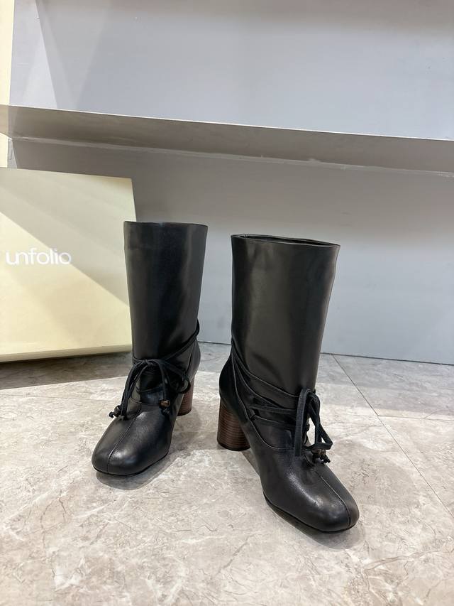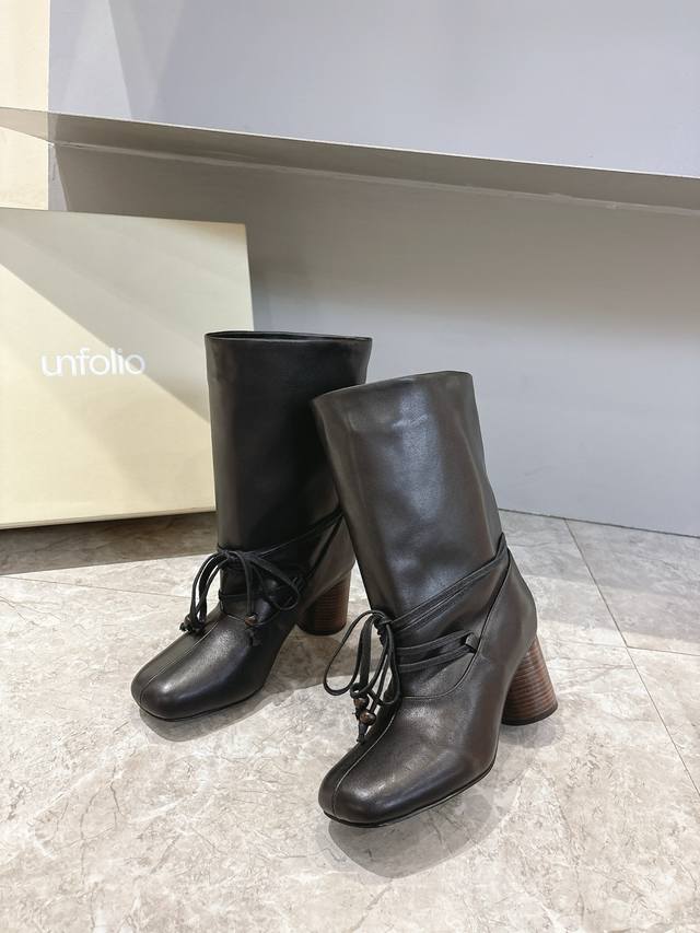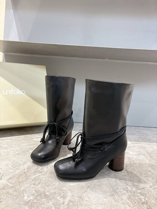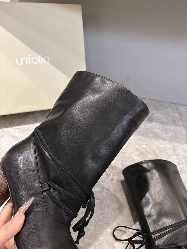 Unfolio Autumn/Winter New Arrival DDD Unfolio Pleated Lace-up Boots