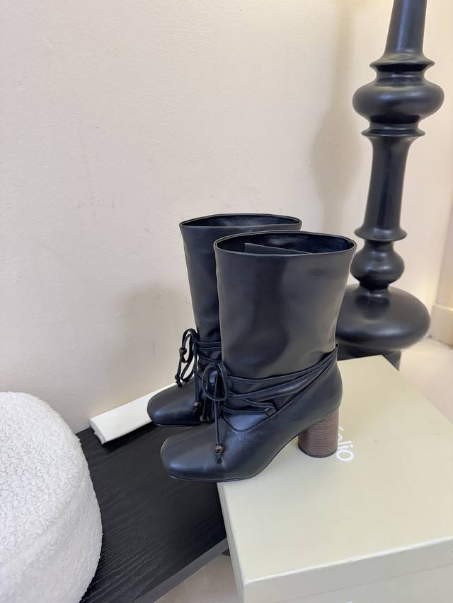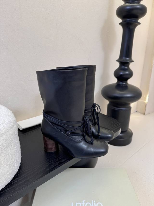 Unfolio Autumn/Winter New Arrival DDD Unfolio Pleated Lace-up Boots | Welding "Dark High-End" into Autumn/Winter Outfits DDD Smooth leather creates a casual pleated look. The lace-up design locks in a niche style. The wooden chunky heel exudes a retro vibe. These boots play with dark aesthetics to create a sense of layering. Whether paired with a trench coat for a cool and edgy look or with a skirt for a contrasting effect, they make you a "style pioneer" in the fashion world. A must-have "textured dark card" for autumn/winter. Fashionistas, grab them now! DDD Imported cowhide upper, imported cowhide lining, sole, Zp mold, 7cm heel, sizes 35-39, 40.41 (orders accepted) DDD