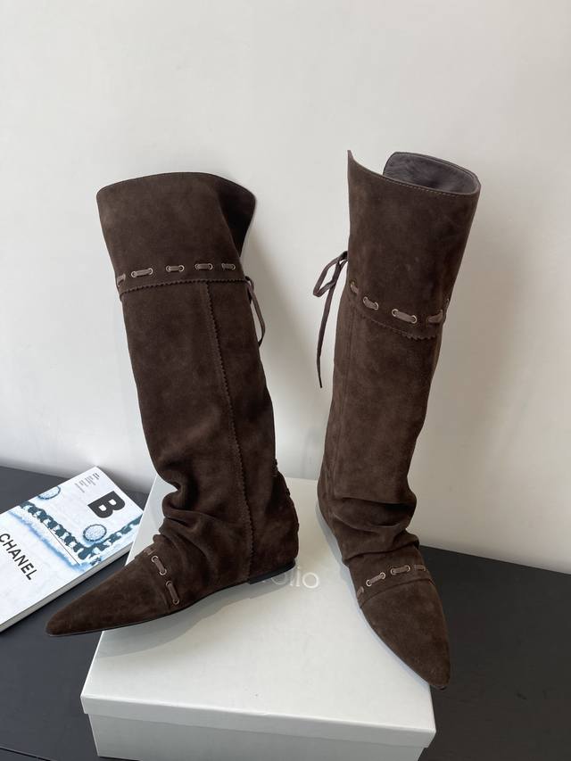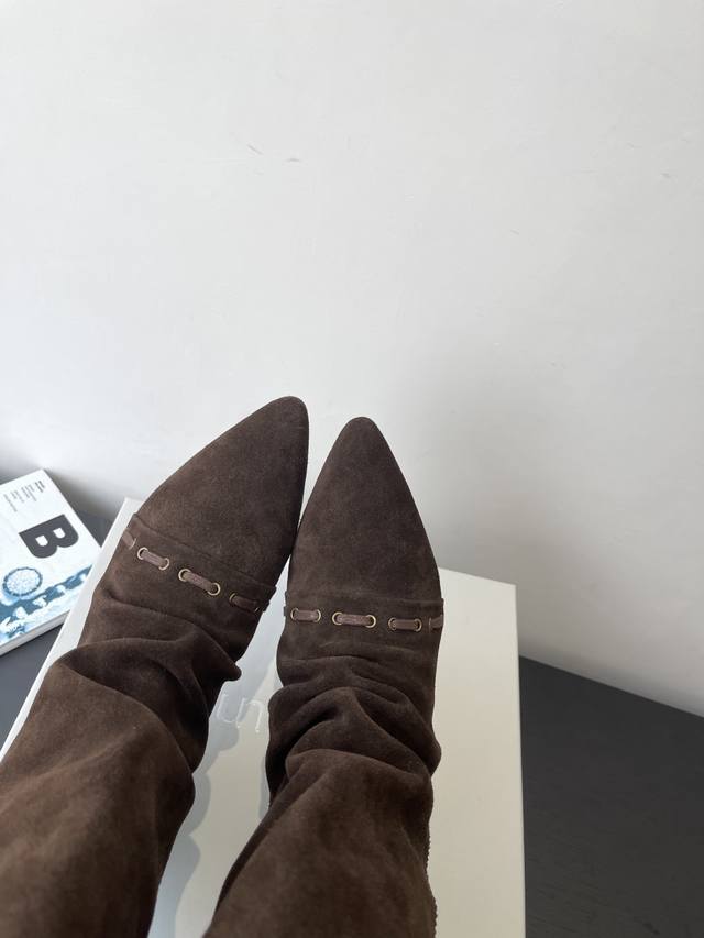 Stacked Ankle Boots Black Selected Calfskin Leather Smooth and Delicate, Natural and Flowing Texture, Firm to the Touch and Glossy, Presenting a Low-Key and Elegant Texture. Suede Version Has an Inherent Lazy and Casual Temperament. The suede version has a soft and warm touch, and it becomes more and more comfortable to the feet as you wear it, showing a relaxed and carefree style. The lining is made of high-elastic fabric, so it won't make your feet stuffy in spring and summer. In autumn and winter, it provides a full wrap-around feel, combining warmth and comfort against the skin. It not only modifies the leg lines, but it is also comfortable to wear for a long time. The sole is made of ultra-soft rubber material with excellent flexibility, which can flex flexibly with each step, and has reliable anti-slip performance, making every step stable and comfortable.