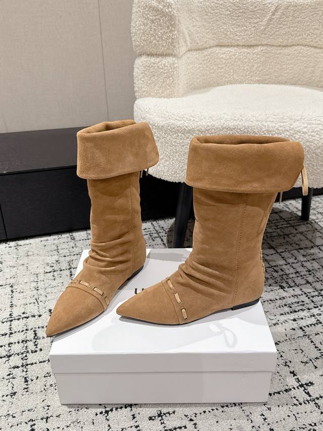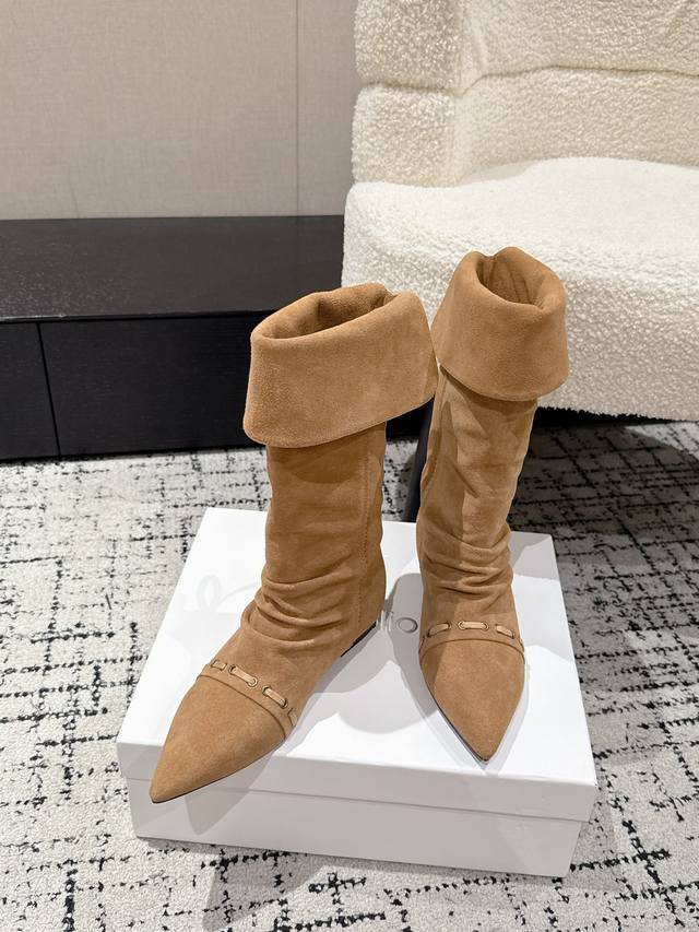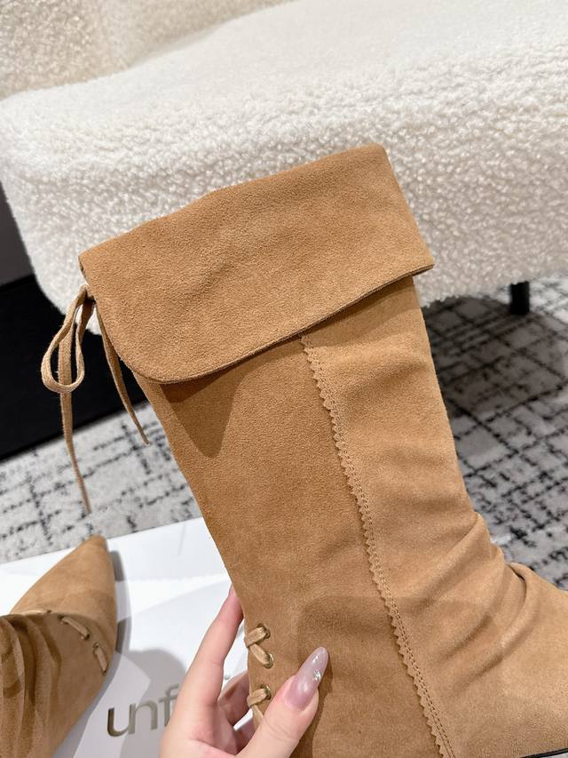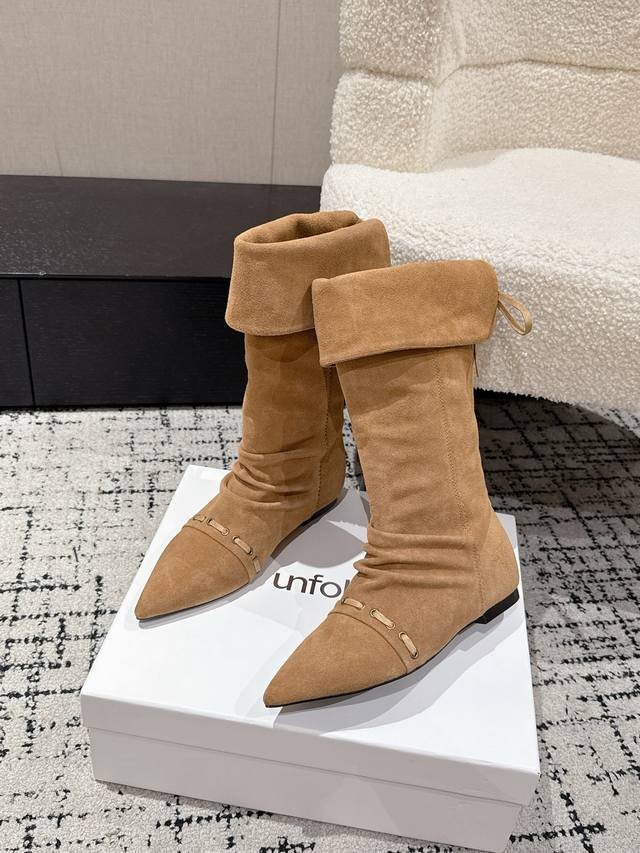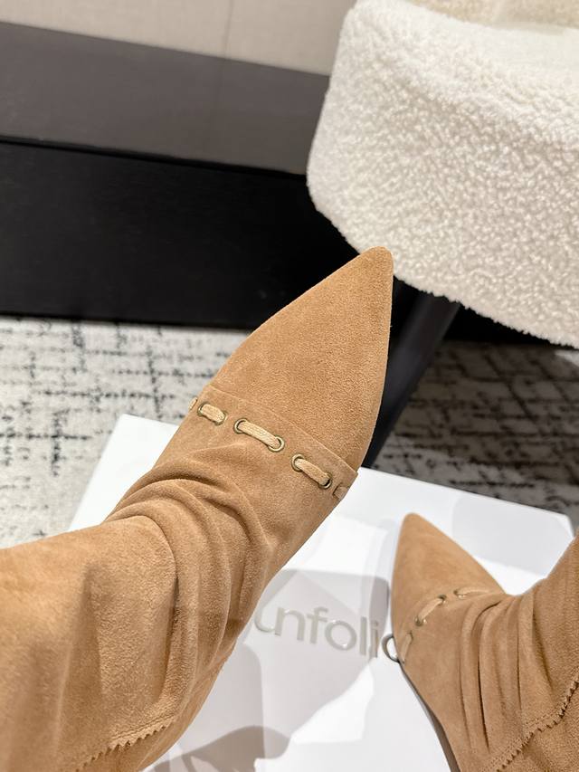 Unfolio Niche designer brand 25 new autumn and winter stacked nude boots