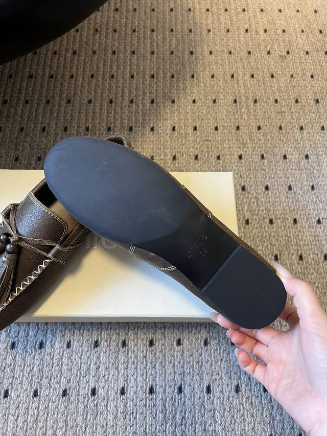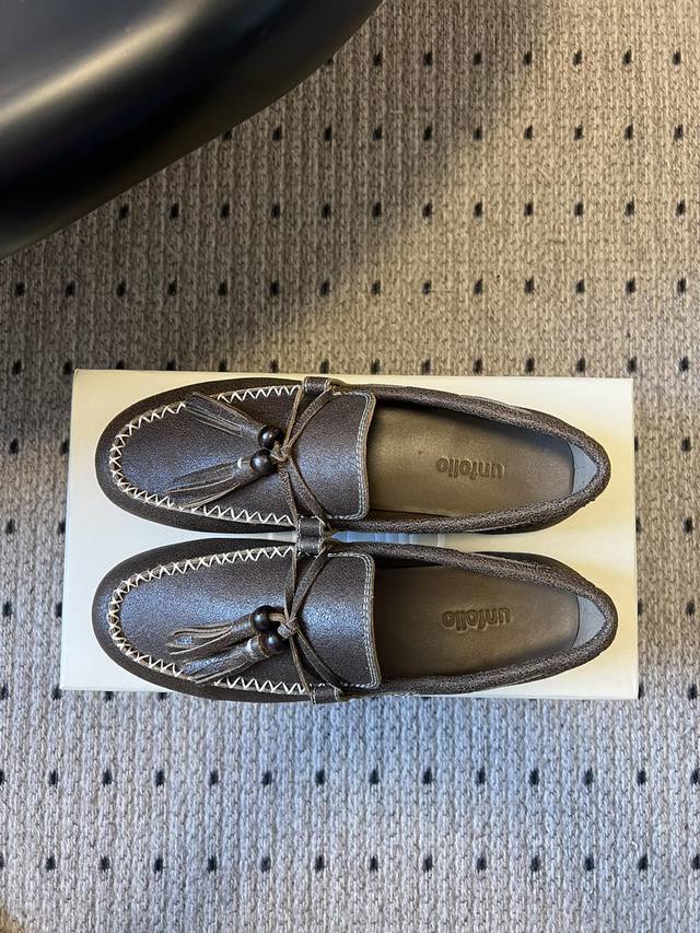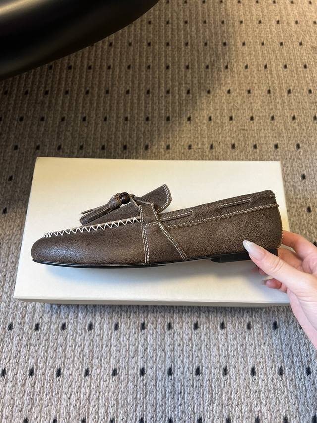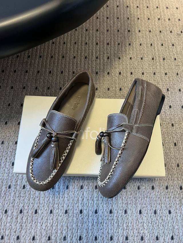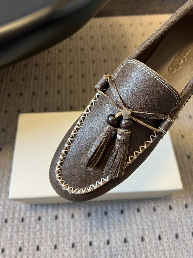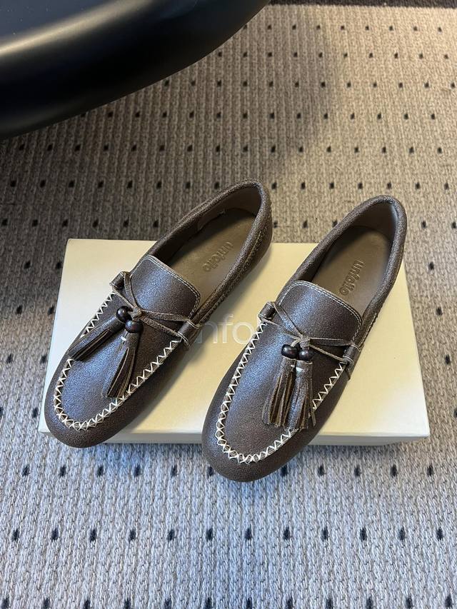 Unfolio Retro Minimalist Tassel Flat Loafers DDD Made of suede, soft to the touch with a sophisticated matte finish. The design is detailed, featuring tassels, decorative beads, and visible stitching, giving it a refined yet retro feel. These slip-on loafers are easy to put on and take off, suitable for everyday commutes or casual occasions. DDD The color scheme is a low-saturation brown tone, understated and versatile, easily blending with different styles. The shoe shape conforms to the foot, and the flat design balances comfort and a sleek look. DDD Upper: Cow Suede DDD Lining: Sheepskin DDD Outsole: Rubber Outsole DDD Height Increase: 2cm DDD Size: 35-41, Sizes 40 and 41 are custom-made and non-refundable DDD