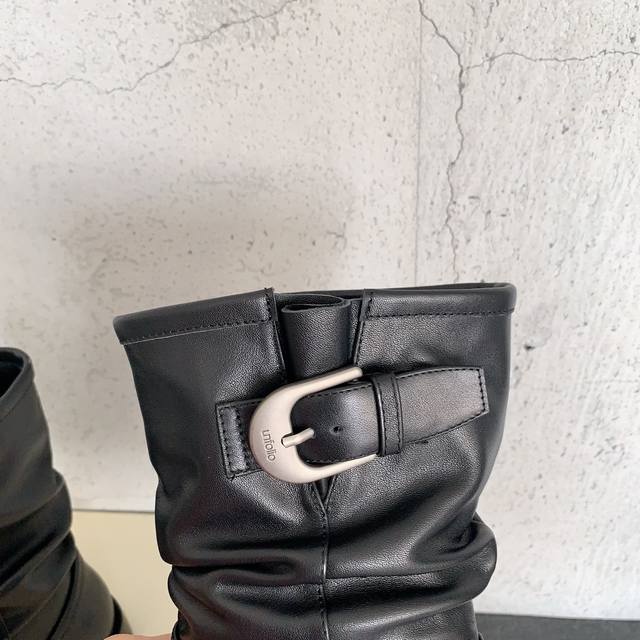 Unfolio's new autumn/winter slouch boots are hailed as the best-looking slouch boots of the year without being an exaggeration. They are incredibly retro and versatile, featuring a relaxed and simple design with a matching cowhide suede upper, sheepskin lining, and an Italian imported injection-molded outsole. Sizes: 35-39# 40# Made to order, no returns or exchanges.