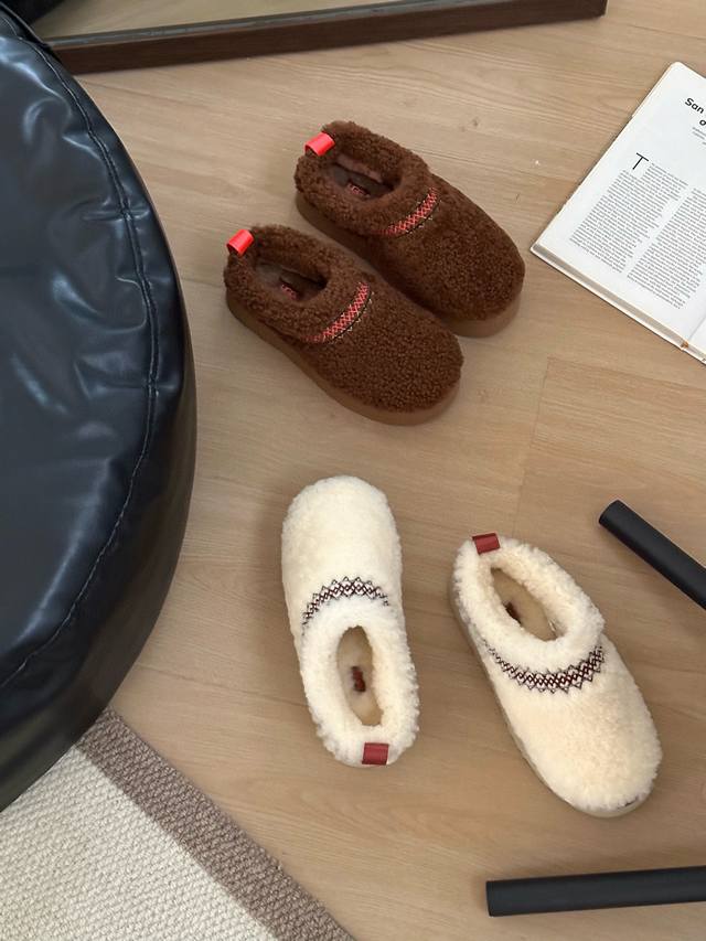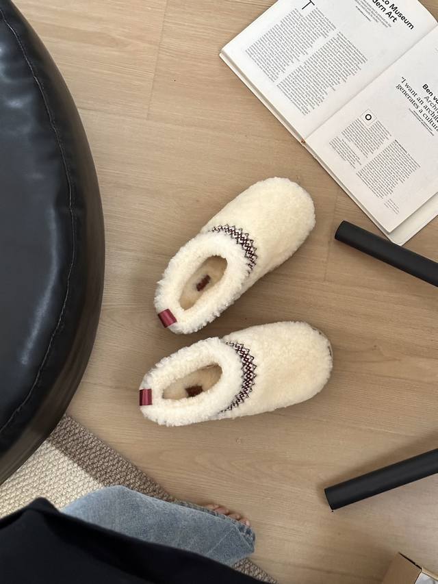 Upgraded Ethnic Style Lambswool Thick-Soled Fur Sandals DDD Upper made of lambswool, original embroidery at the shoe opening DDD White, Coffee DDD Size: 35-40 DDD