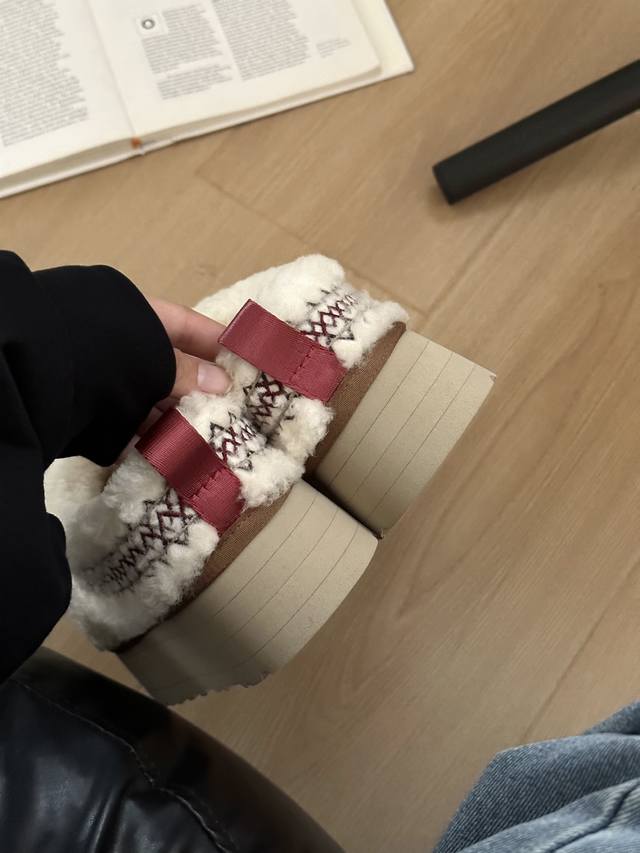 Upgraded Ethnic Style Lambswool Thick-Soled Fur Sandals Upper made of lambswool