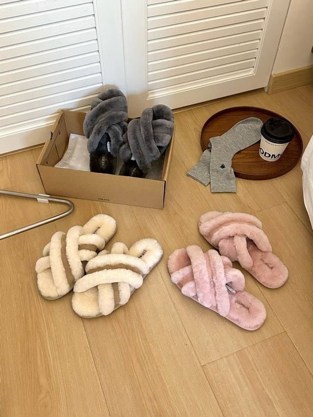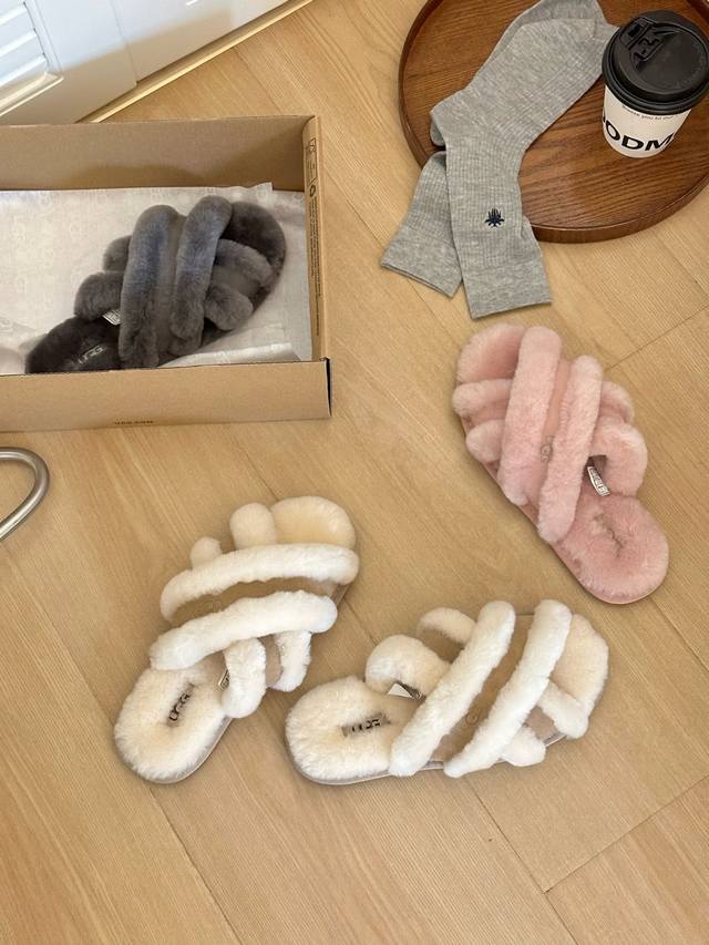 Uugg women's casual open-toe furry comfortable home sandals