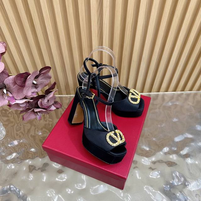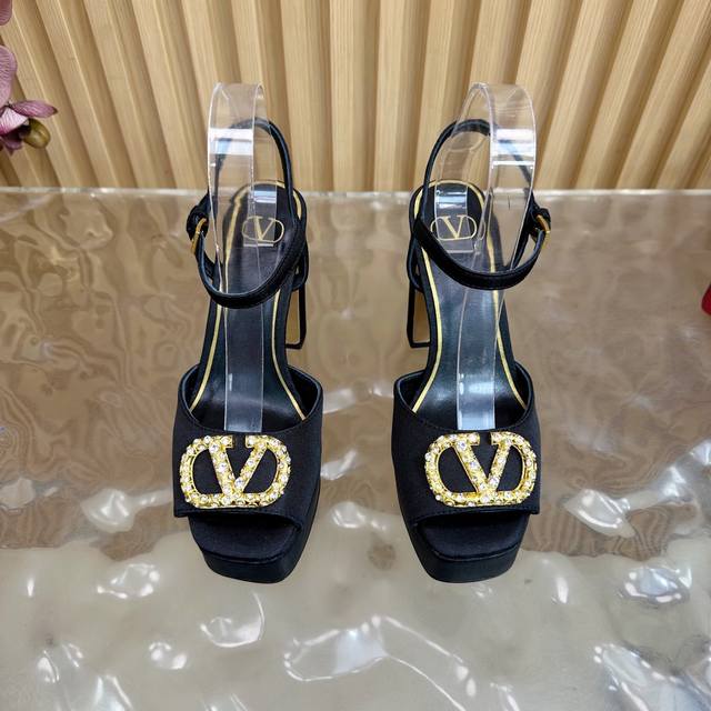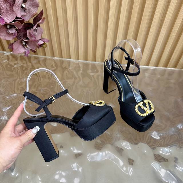 Valentin classic high-heeled waterproof platform sandals with a large V-neck buckle. The classic large V-neck design is paired with a fish-mouth shape.