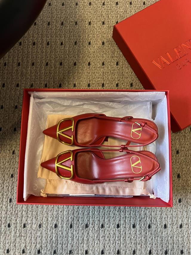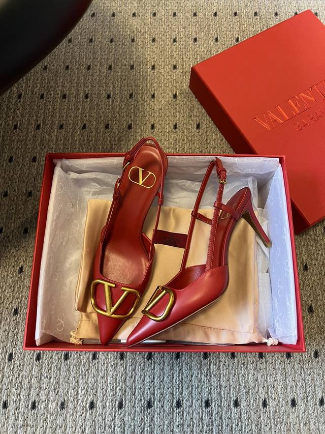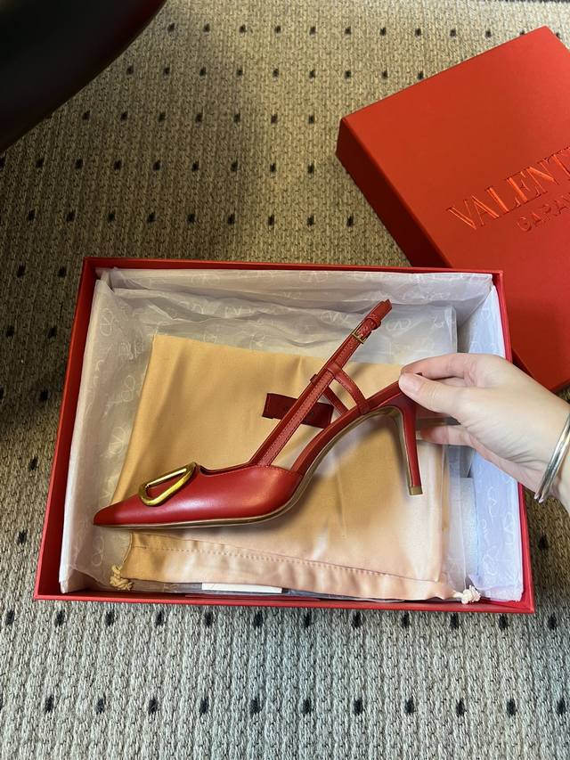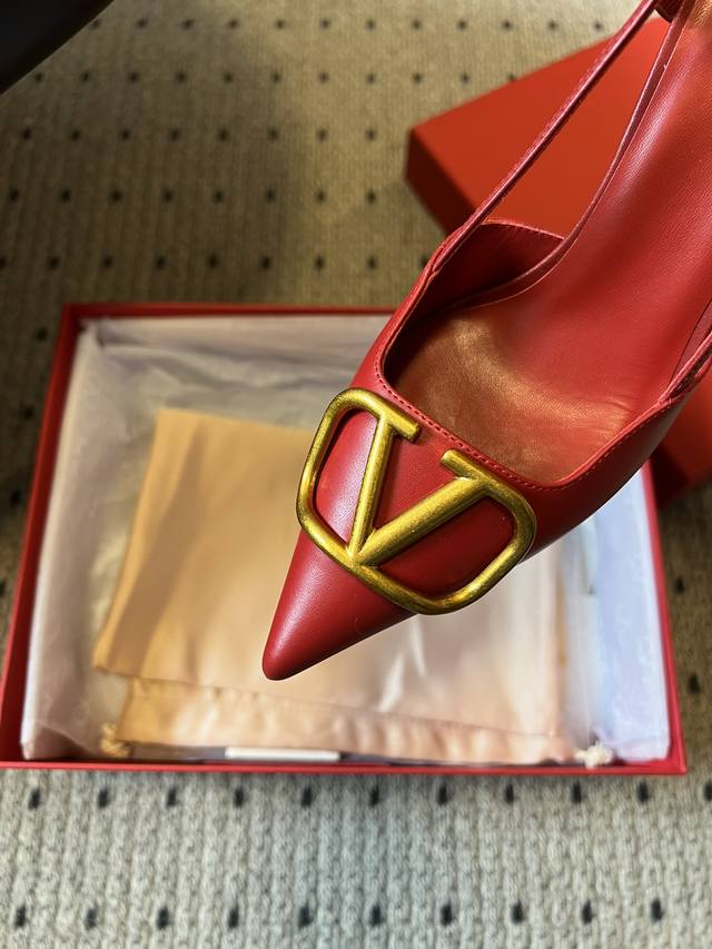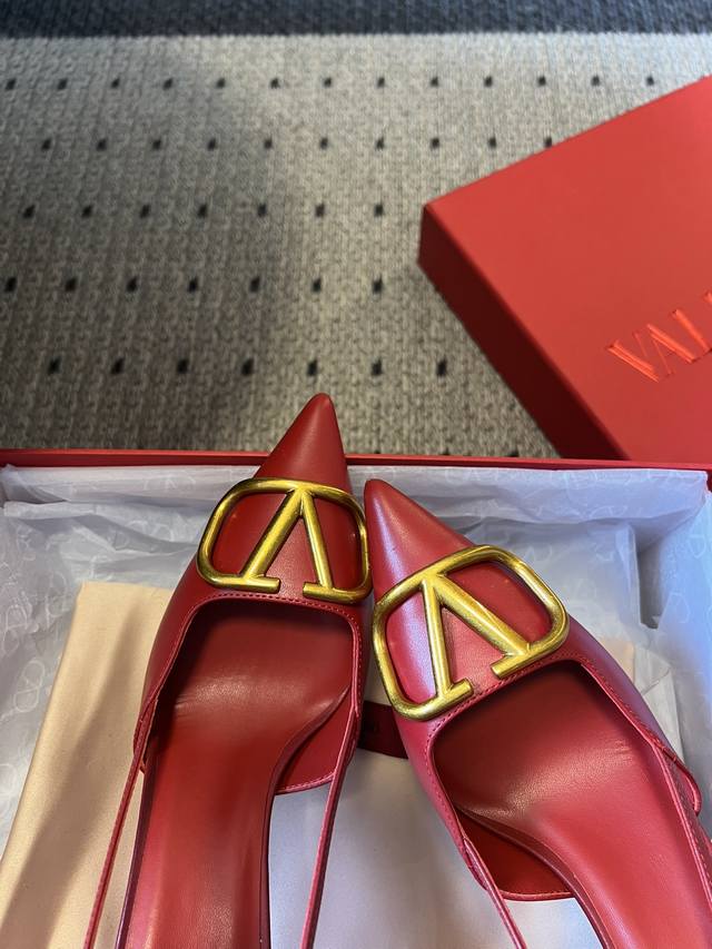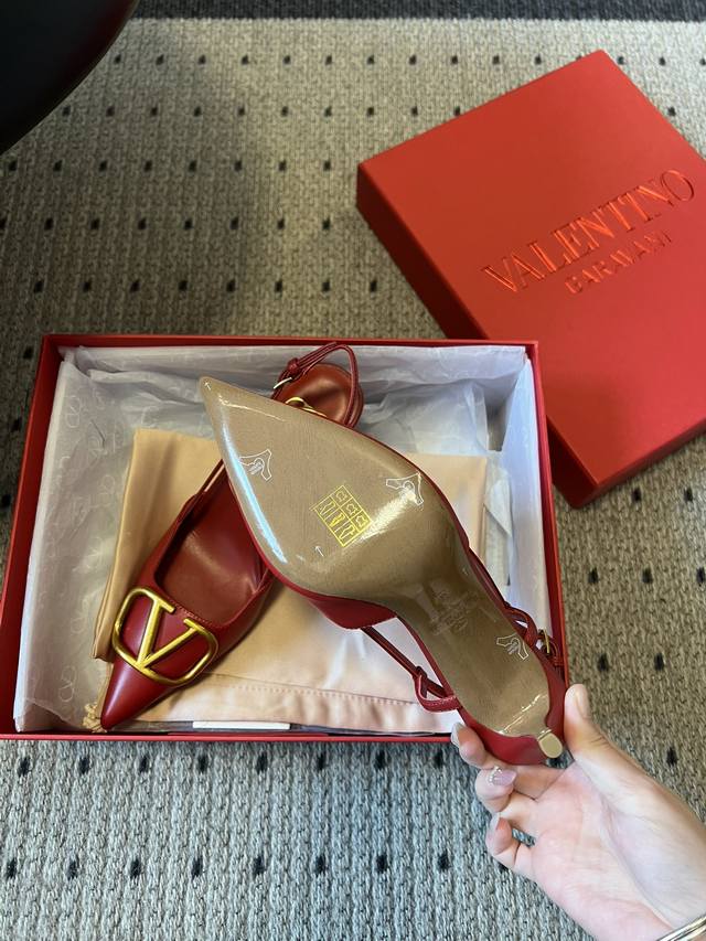Valentin* Classic V-Buck Pointed Toe High-Heeled Sandals DDD All shoes feature the brand's classic V-shaped metal buckle element, paired with a pointed toe. Some styles feature a backless strap design, with clean lines and high recognizability. Primarily available in red, black, and nude tones, the red is bright and bold, the black is simple and versatile, and the nude tones are gentle and elegant, covering the needs of different wearing occasions. DDD The upper is made of smooth leather, and the heel is a stiletto heel, balancing elegance and sophistication. The brand logo is printed on the insole, highlighting the brand's identity in the details. DDD Upper: Calfskin Ddd Lining: Goatskin Ddd Outsole: Genuine Leather Outsole Ddd Sizes: 34-42 Sizes 34, 40, 41, and 42 are non-refundable and non-exchangeable Ddd Heel Height: 7cm Ddd DDD