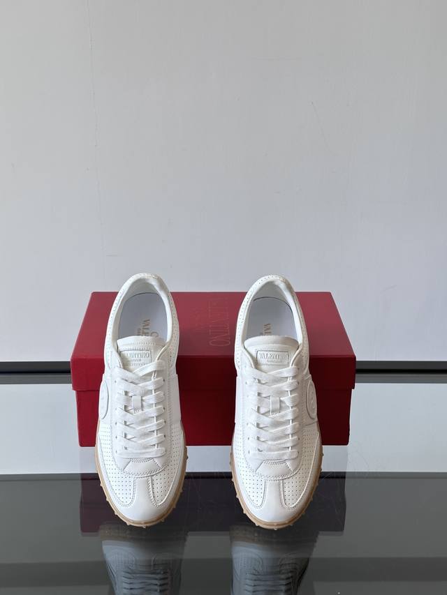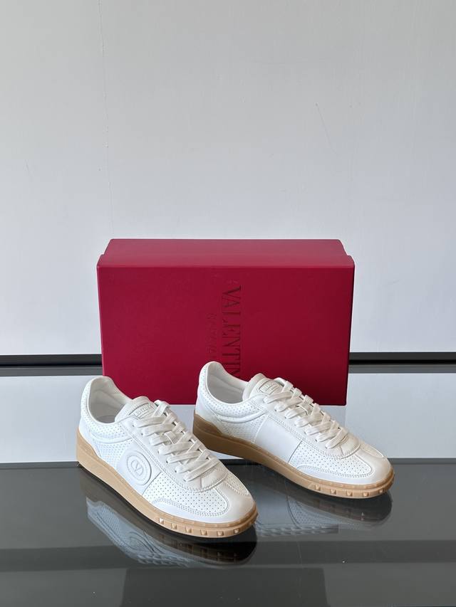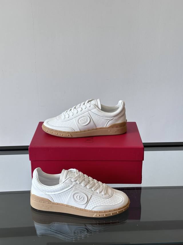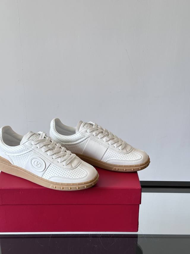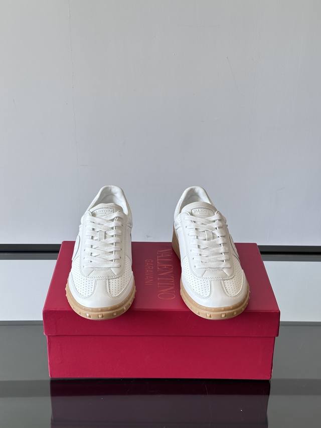 Valentin* Couple Casual Sneakers, a stylish and versatile item. Made with heavy-duty calfskin, featuring a rubber sole, Vlogo Signature, and rivet details. Top-grain cowhide lining. Comfortable, stylish, and incredibly fashionable! Original box packaging, multiple colors available! Size: 35-45