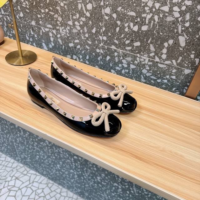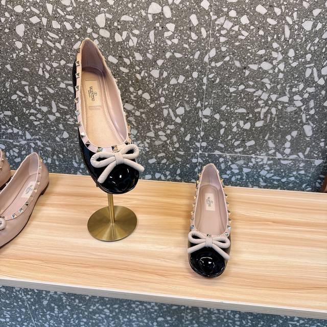 Valentin's new ballet flats with studs and ballet shoe elements are simply stunning! A perfect blend of sweet and cool, they're my dream shoes! Upper: Silk fabric, patent leather. Lining: Sheepskin. Outsole: Italian leather. Sizes: 35-39, 40, 41, 42. Custom orders are non-refundable and non-exchangeable. Price: [Price not specified]