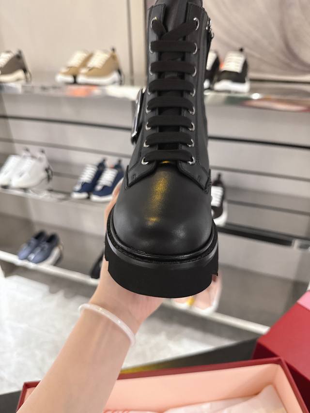 Viv' Rangers Truck series is both individualistic and sophisticated, showcasing urban style. These leather boots feature a non-slip thick sole and are adorned with signature buckles, easily adding personalized details to any look. Made of calfskin. Features include metal buckles, an inner zipper, leather trim, a leather insole, and a rubber outsole. Sizes 35-39, size 40 is non-refundable and non-exchangeable. Factory price: [price missing]. Suitable season: Winter. Recommended for: Everyday wear, commuting.
