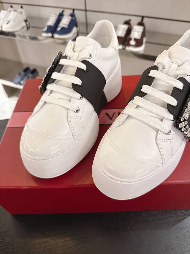 Viv' Skate platform sneakers are coming this June! The heel height has increased dramatically to 8cm, instantly giving you longer legs. The upper is handcrafted from full-grain leather and features classic Viv buckles, making them suitable for various occasions. Made of Nappa calfskin. Patent leather details. Painted buckles. Leather insole. Rubber outsole. Sizes 35-41. Custom orders are non-refundable and non-exchangeable. Factory price. Suitable for all seasons. Recommended styling: Versatile.
