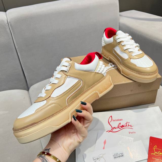 Wang Junkai, Yang Mi, Xu Kai, Zhang Jingyi, Ding Chengxin, Chen Muchi, and Wang Ziyi all wear the same Christian Louboutin Astroloubi thick-soled sneakers. These red-soled shoes are the perfect fusion of fashion and sport. They're made from luxurious calfskin, soft suede, smooth satin, and laminated leather, with classic rivet detailing on the heel. The lining is a blend of durable, breathable, and quick-drying comfort, while the knitted tongue adds durability. The outsole is a combination of EVAP foam and imported rubber, and the colorful outsole features the brand's signature Cl lettering on the side, showcasing the brand's unique style. These are incredibly comfortable skate shoes! Available in men's sizes 39-45 and women's sizes 35-40 .