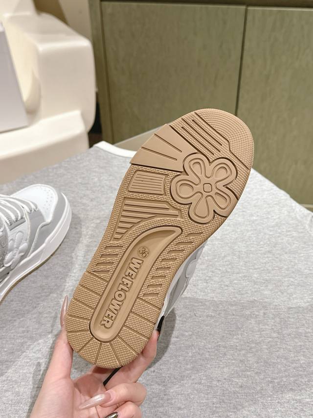 Weflower, a trendy, niche brand, offers couples a retro jogging shoe, worn by countless celebrities... Comfortable and lightweight, the built-in soft-stretch insole easily extends 3.5cm. Unprecedented cloud-like comfort, perfect for all commuting situations. Its minimalist, retro design combines detail and innovation, perfect for those who value quality and style. Defining a unique style and expressing a free spirit. A wide variety of colors are stunning! Selling out globally, the official website and counters are selling out. Super retro and versatile, it's a favorite sneaker recommended by many celebrities. Authentic, pattern-developed, two-tone outsole, intricately crafted! Fabric: Imported cowhide leather. Lining: Original breathable mesh. Outsole: Original outsole. Sizes: 35-44. A complete set comes in a gift box with the original counter!