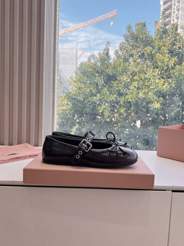 What you see is what you get G0286 Top-tier version, 2025 Spring/Summer Fashion Week Miu Miu's new Mary Jane ballet loafers with buckles are absolutely stunning! Aside from details like the coin in the middle, the overall shape is incredibly elegant and not bulky. Round toe. Upper: Imported metallic cowhide. Lining: Imported sheepskin. Outsole: Original sole. Sizes: 35-39. Sizes 40 and 41 are custom-made, no returns or exchanges.