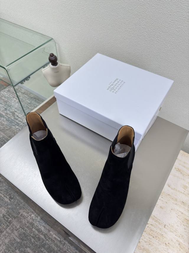 Wine glass heel split-toe elastic slip-on boots, latest small 6 Ddd black cow suede Ddd Bengal cowhide lining DDD Maisonmargiela Ddd Maisonmargiela Mm6 Ddd Hot arrival! So good Ddd Bright and colorful, youthful vibes oozing out! Ddd A must-have fashion item, simple yet stylish beauty Ddd A must-have item, a fashion and age-reducing artifact, casual and genuine feel Ddd Simple and high-end design incorporating Mm6's unique logo Ddd Simultaneously meets the needs of daily casual vacations, truly comfortable Ddd Italian genuine leather outsole split design Ddd Original version consistent materials, please recognize our high-quality goods Ddd 35 36 37 38 39 40 41 40 41 Customized DDD