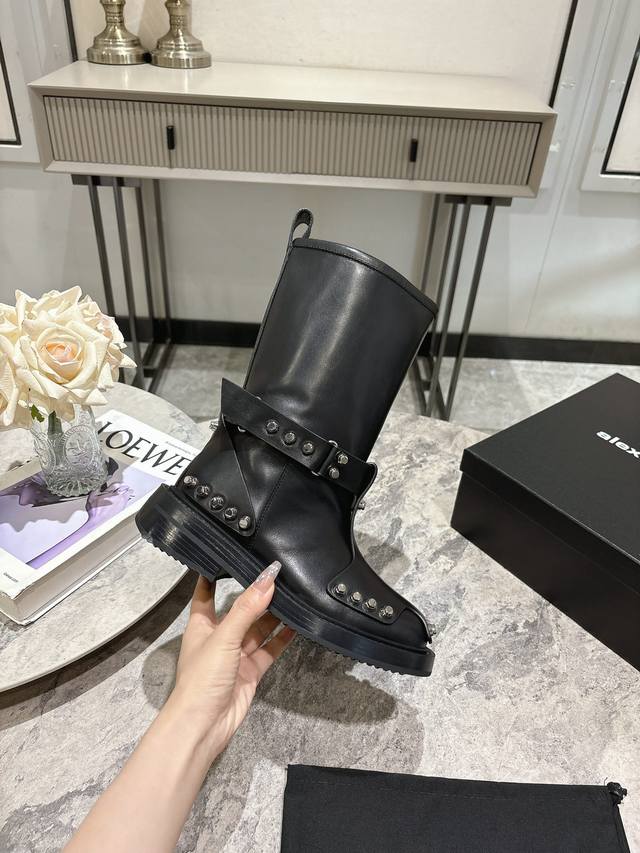 2025 autumn and winter new Aw King riveted leather buckle boots, Martin boots, Alexander Wang's latest element cowhide sole